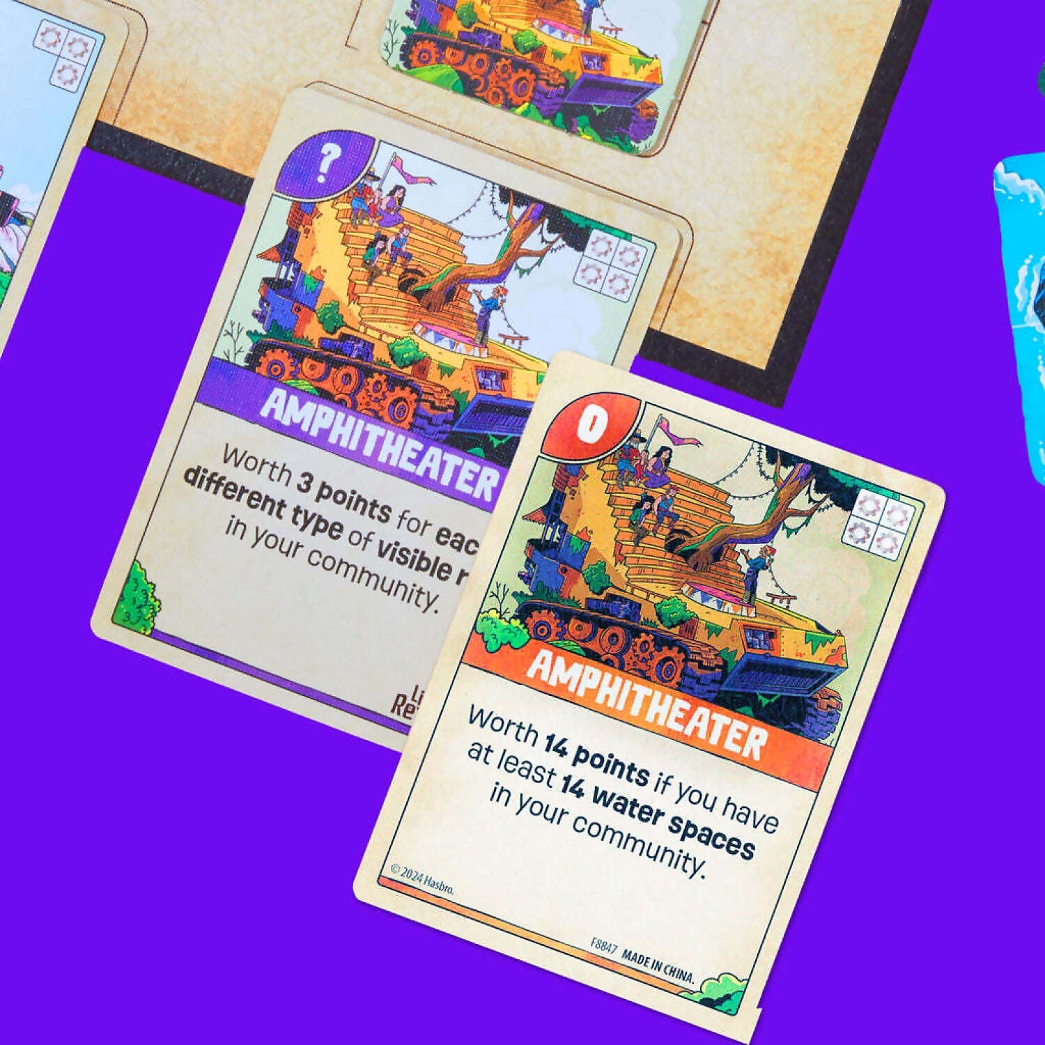 BUILD DIFFERENTLY EACH TIME: Building cards mix up the game with unique powers that allow players to change their community and earn more points. Choose from 3 themed building sets, or mix and match to curate one for endless games