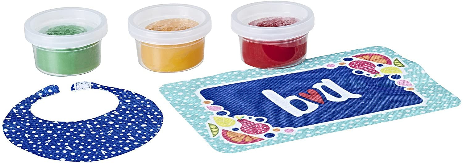 Stock up on pretend snack supplies with the Baby Alive Super Snacks Reusable Solid Doll Food Refill Pack! This pack comes with 3 containers of solid reusable doll food to make snacks for all Baby Alive Super Snacks dolls (Dolls sold separately. Use Baby Alive reusable solid doll food on Baby Alive Super Snacks dolls only). Each container is reusable so kids can prepare pretend treats for their doll again and again. Mommies and daddies can use the included bib and placemat to make sure their baby is ready for a fun snack time! Baby Alive and all related properties are trademarks of Hasbro.