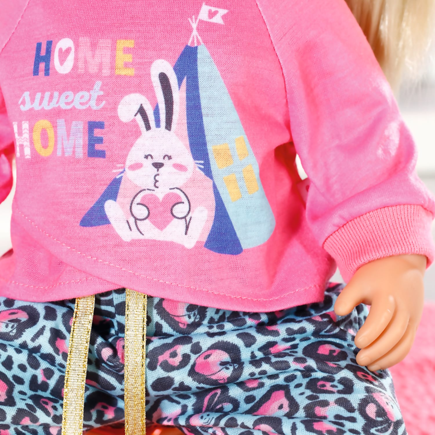This adorable set has everything BABY born needs for a good night’s sleep, whether that’s in her own little bed or at a sleepover with your little one! First up, BABY born needs to get changed into her long-sleeved pyjama top and funky leopard print bottoms – so cute! Don’t forget her blue bunny slippers to keep her little toes warm!