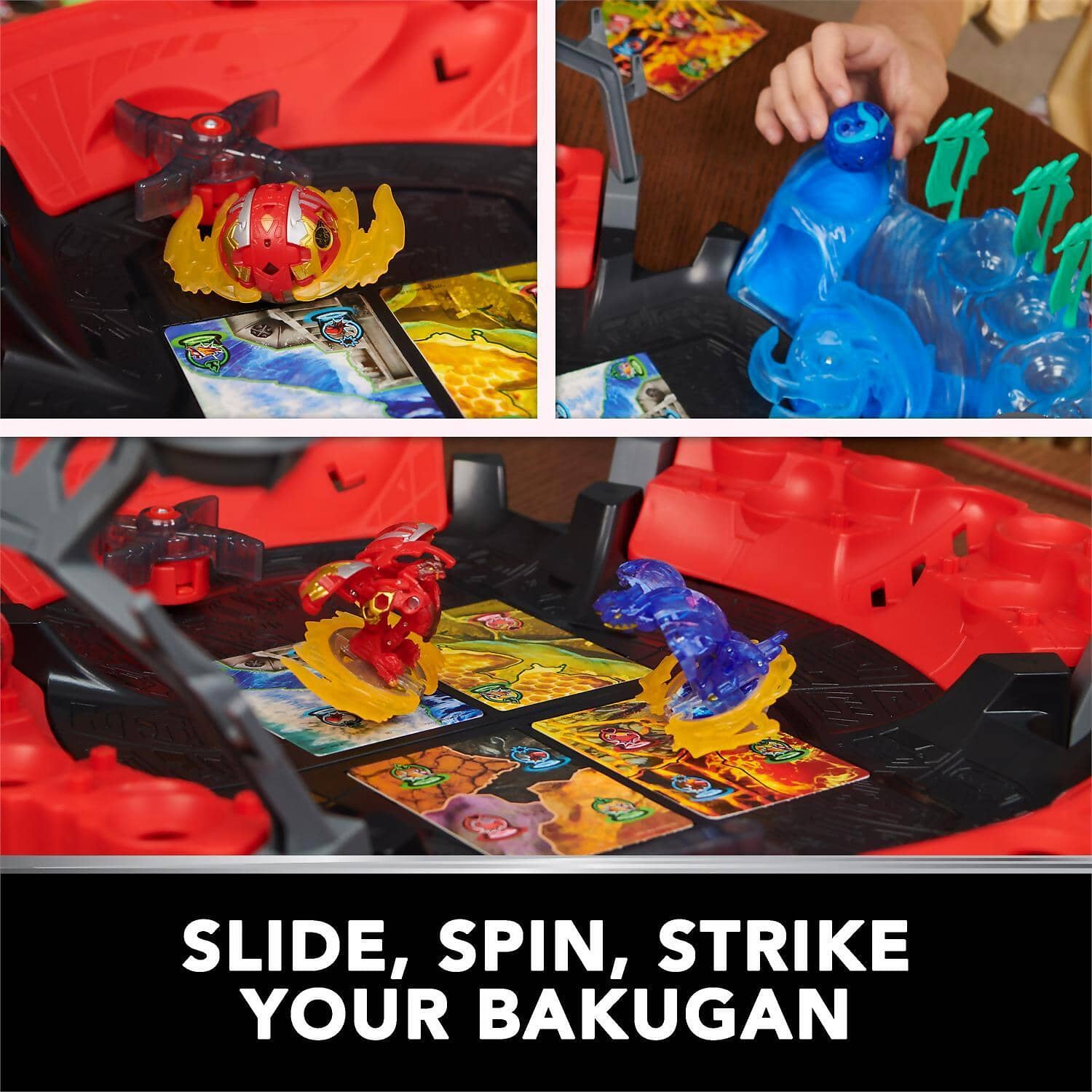 - CUSTOMIZABLE BATTLE ARENA: Slide, spin, and strike your Bakugan on this ultimate playset. Film and store your Bakugan during the action with the built-in phone holder. Use the sparring totem to change up the gameplay with new obstacles.