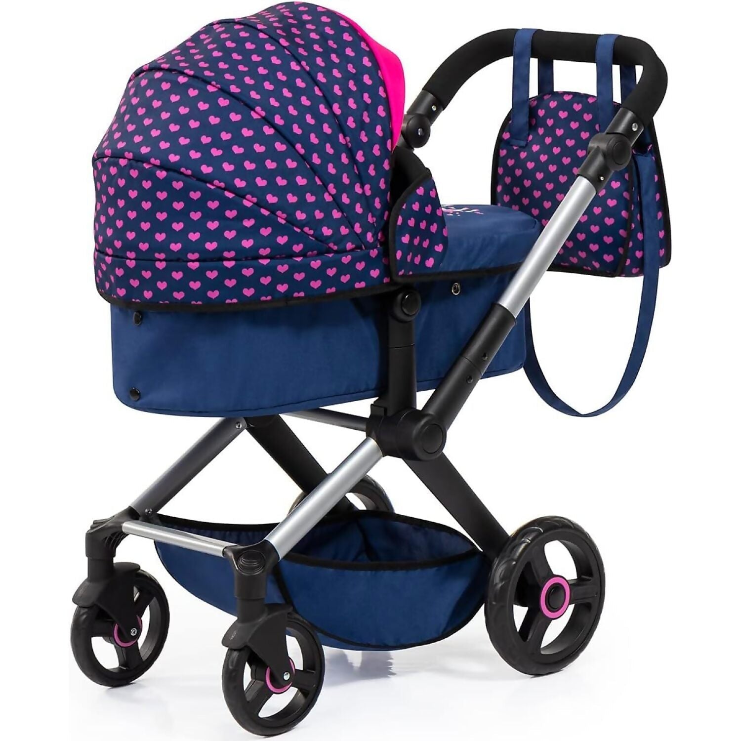 Bayer - Doll Pram Xeo Compact Dark Blue With Pink Hearts
