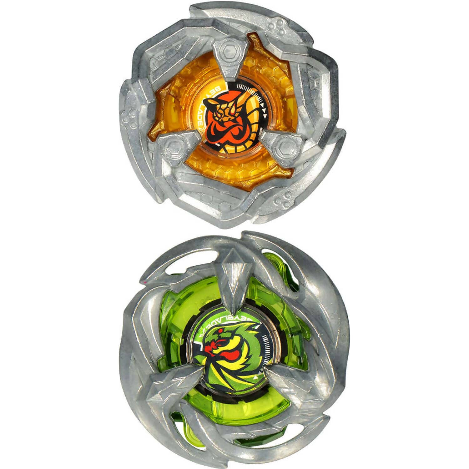 Unleash high-speed battles with the Beyblade X – Gale Wyvern 5-80GB and Tail Viper 3-80HN Top Dual Pack Set, featuring two right-spinning tops engineered for competitive play. Gale Wyvern is a stamina-type top with four streamlined blade points that reduce air resistance, allowing it to maintain spin for longer durations. Tail Viper is a defence-type top with downward-facing blades designed to disrupt opponents and secure survivor finishes.