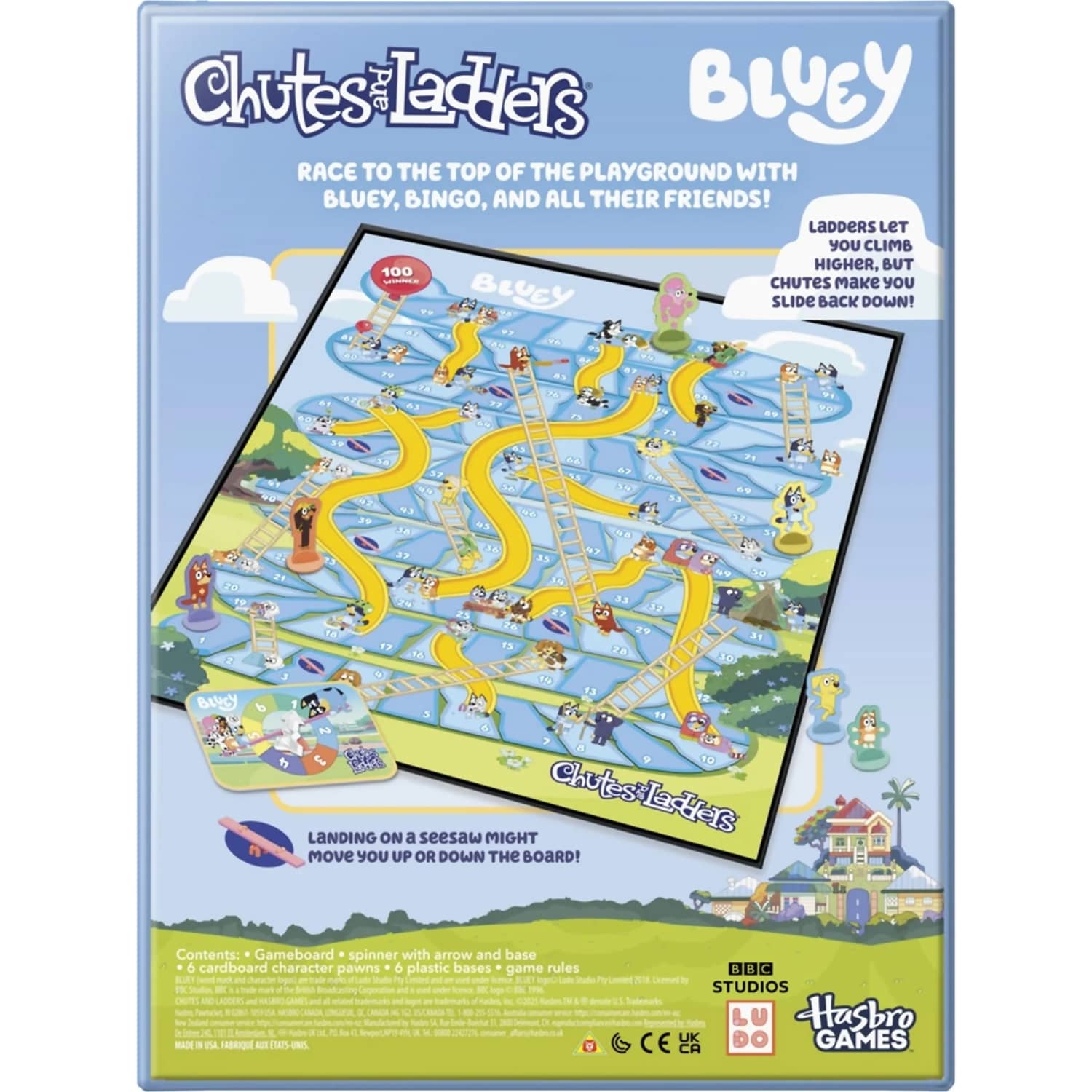 - Classic Chutes & Ladders gameplay with a Bluey twist