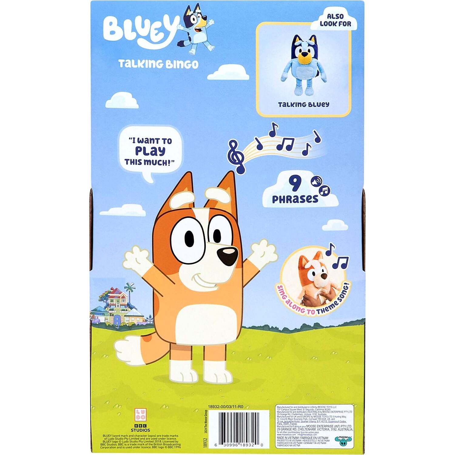 Talking Bingo is not only a large and adorable plush that kids will want to hug and take everywhere, she also loves to talk! Press Bingo's tummy to hear her say some of her favorite phrases from the TV show. She has 9 different fun phrases, including some new ones!