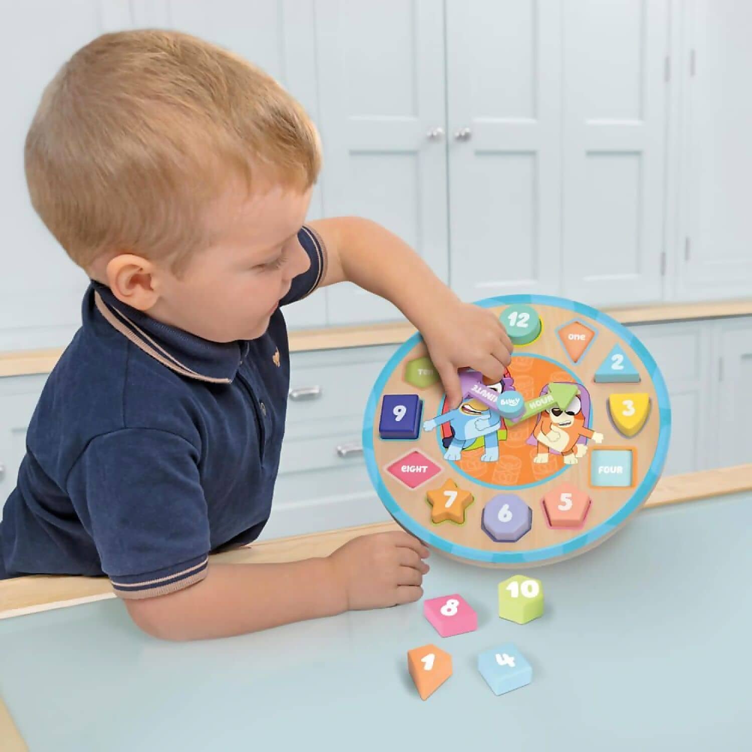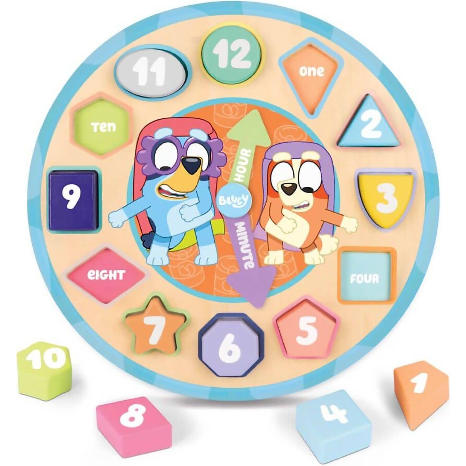 Educating and stimulating, this Bluey Puzzle Clock is great for any Bluey fan. Slot the stand pieces together, let the shape-sorting commence. Fit the 12 numbered puzzle pieces into the right slot and create your own colour clock. With moveable hands, this is a great way for kids to learn how to tell the time and also encourage shape, number sequence and colour recognition.