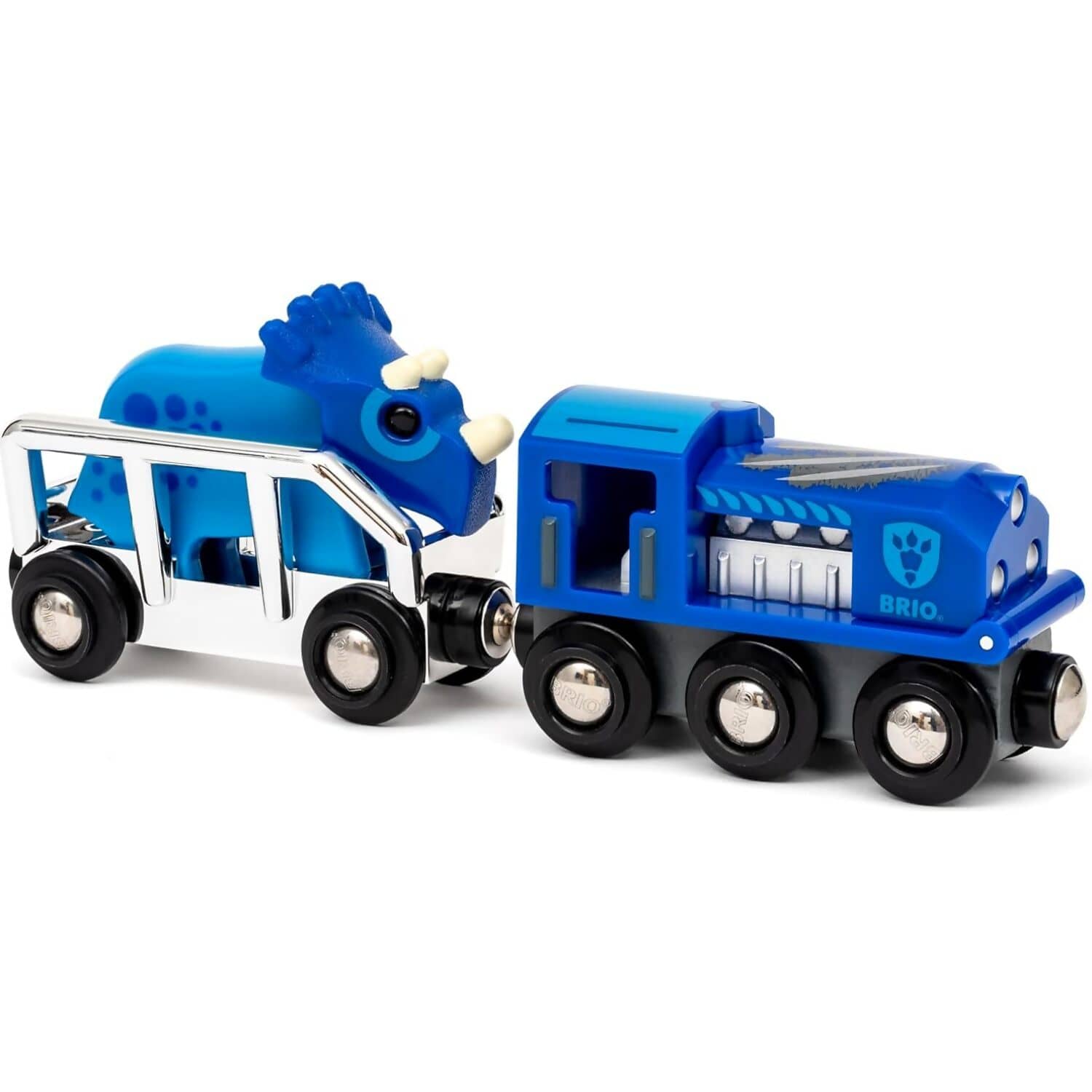 The Brio World - Special Edition Train is a stunning addition to any BRIO World railway, designed to captivate young train enthusiasts. Featuring a sleek silver-blue finish and a unique dinosaur theme, this limited-edition train includes a rare blue Triceratops character for added imaginative play. The train’s hood opens to reveal a hidden motor, allowing children to engage in interactive fine-tuning before setting off on their railway adventures.