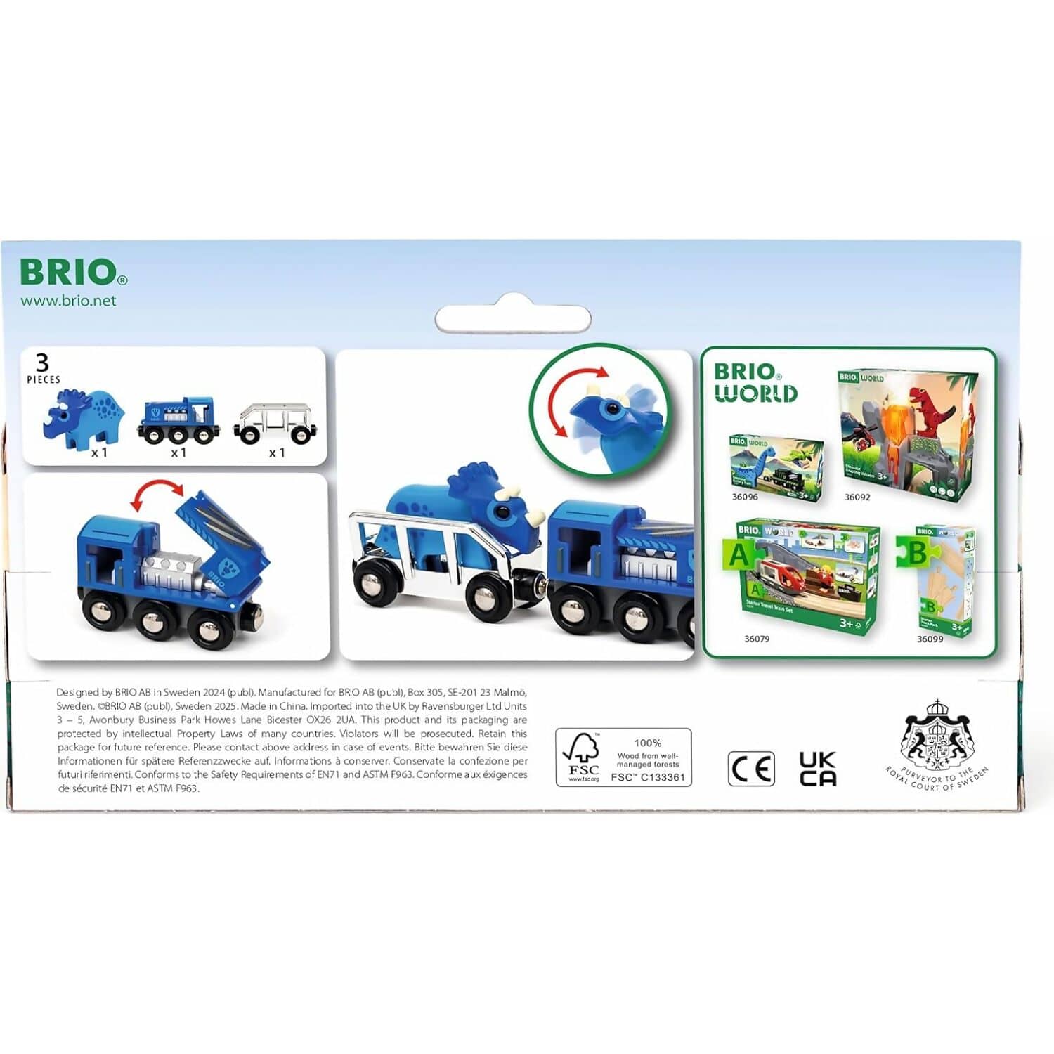 Built with BRIO’s signature craftsmanship, the Special Edition Train seamlessly integrates with other BRIO World sets, offering endless possibilities for creative storytelling. The included wagon provides space for transporting the Triceratops, enhancing the play experience with dynamic movement and role-playing opportunities. Available only in 2025, this exclusive train is a must-have for collectors and young railway fans alike.