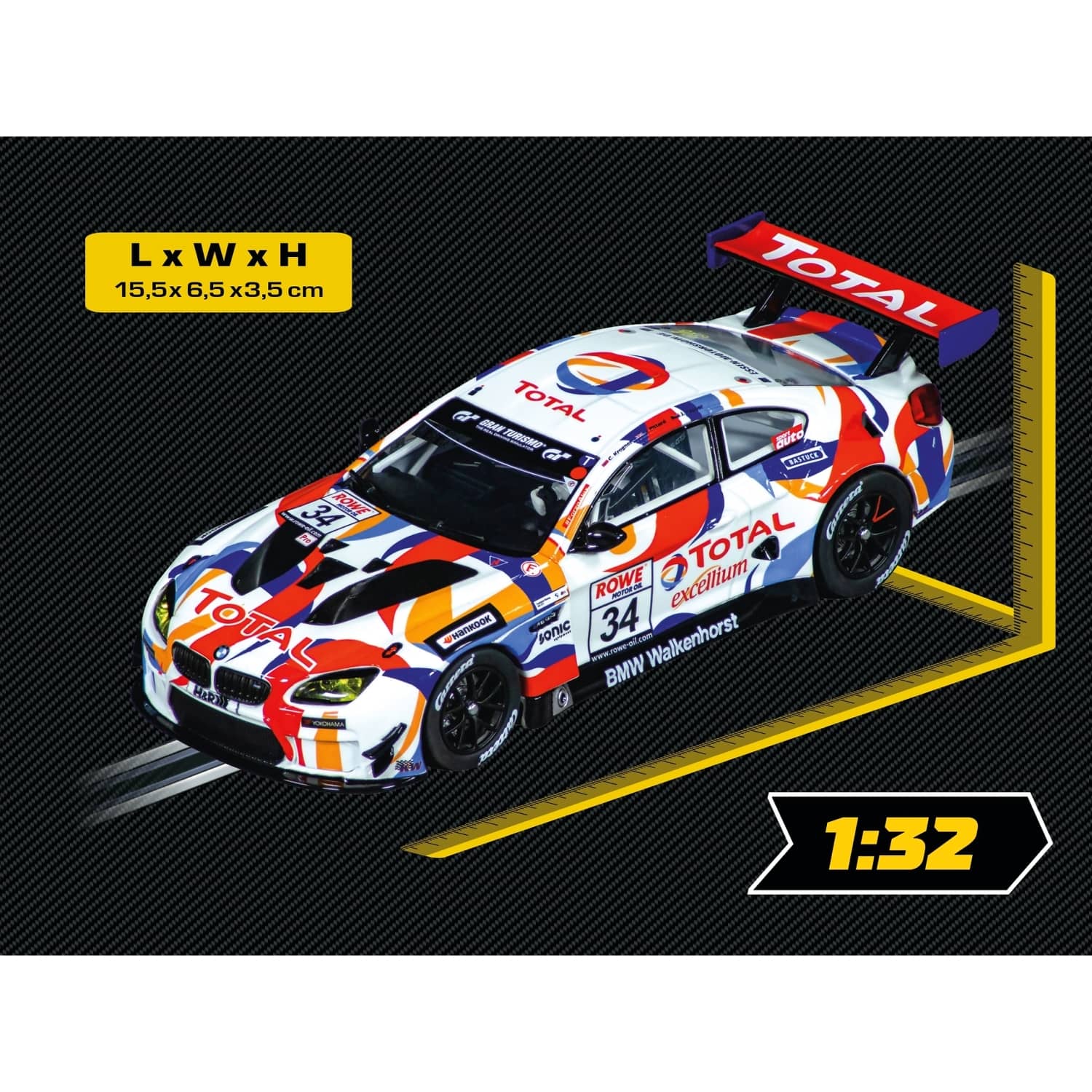 - Official 1:32 scale BMW-licensed replica of the M6 GT3 Walkenhorst Motorsport No.34