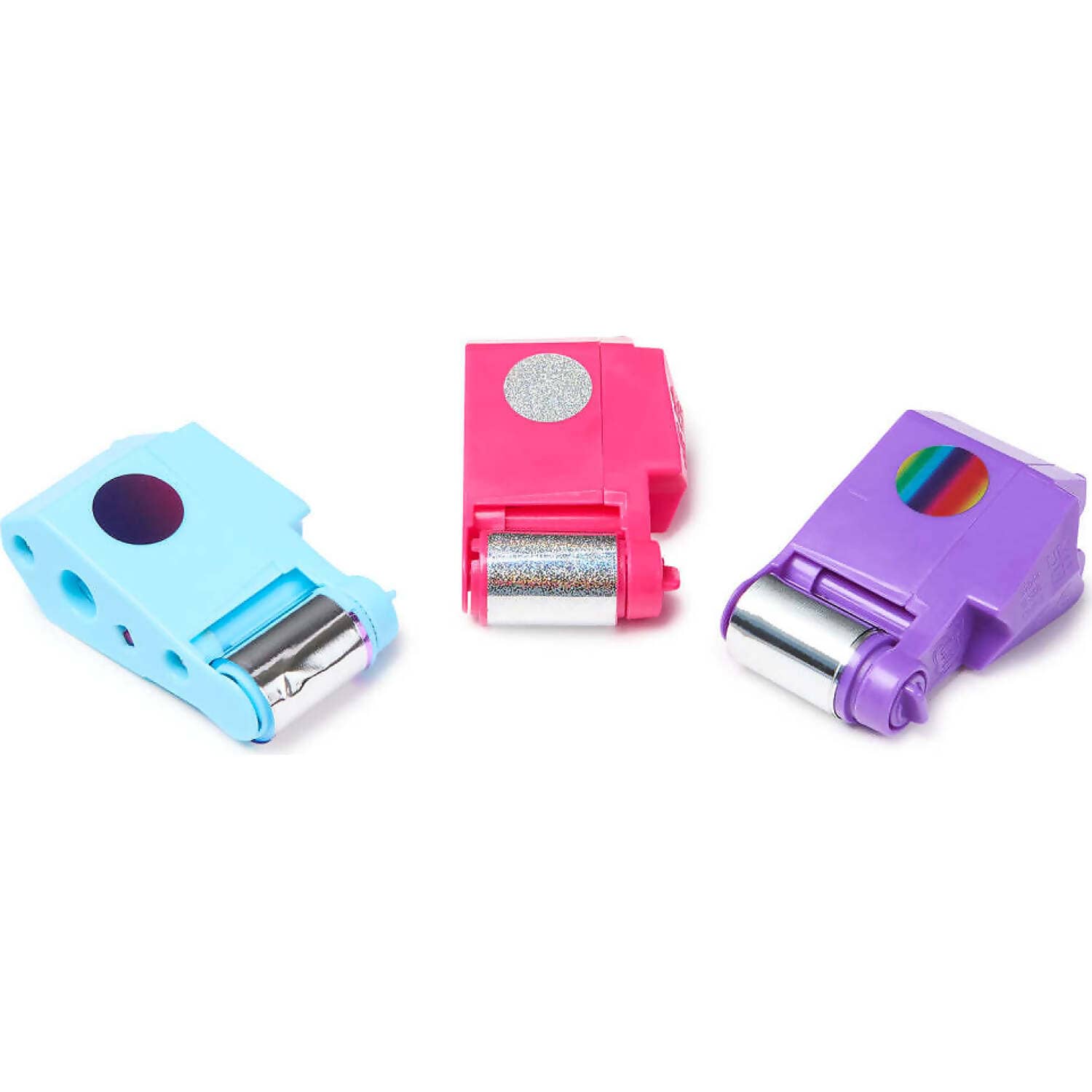 Peel the clear top layer and glide the roller over the sticker, revealing the metallic foil design! Girls can customize with colourful jewels and mix and match foils for one-of-a-kind looks! Each foil has 46 inches to style, roll and reveal again and again.