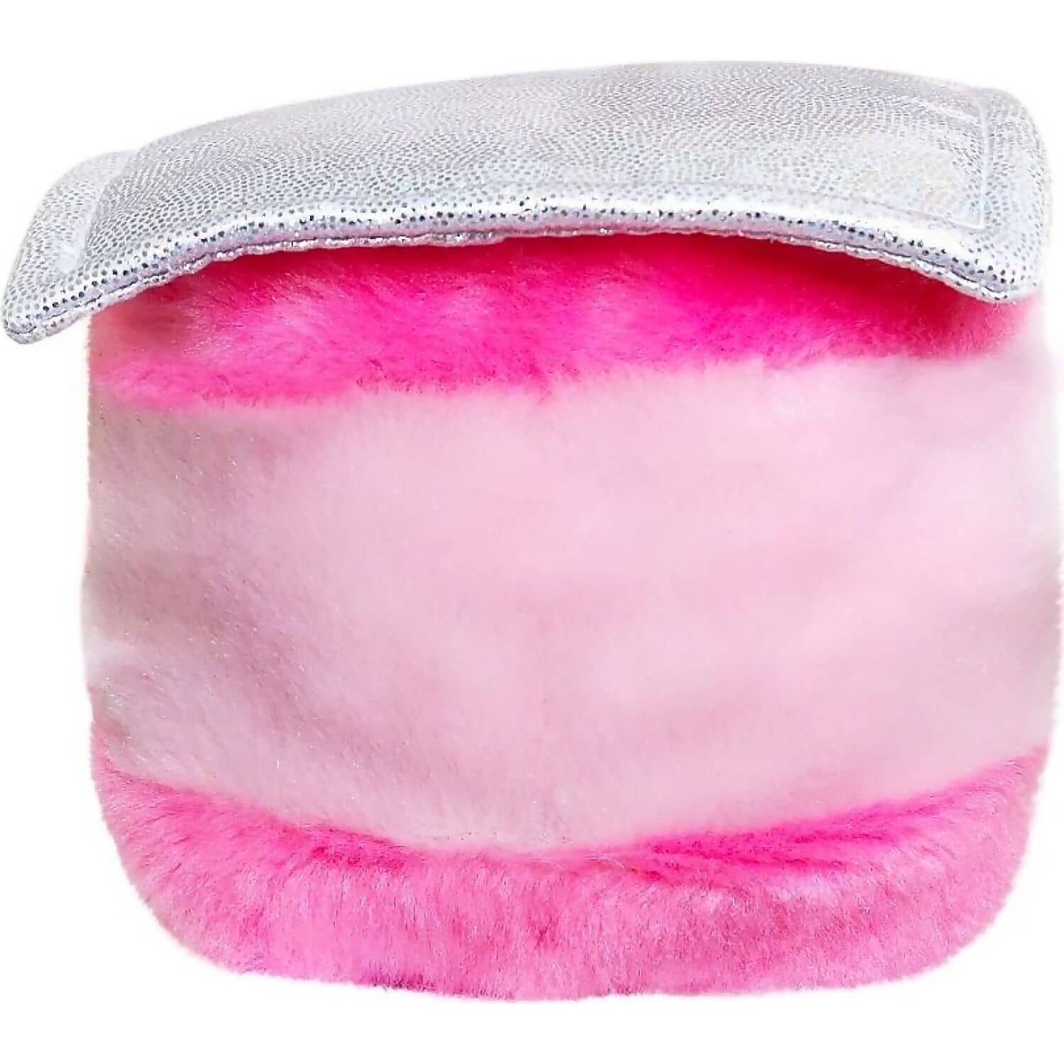 Yona Yogurt is a delightful plush toy from the Cotton Candy Palm Pals collection. This adorable plushie resembles a cute yogurt cup, complete with a sparkling silver lid and a soft pink body. With its happy face and little strawberry decoration, Yona Yogurt brings a touch of fruity fun to anyone who holds it.