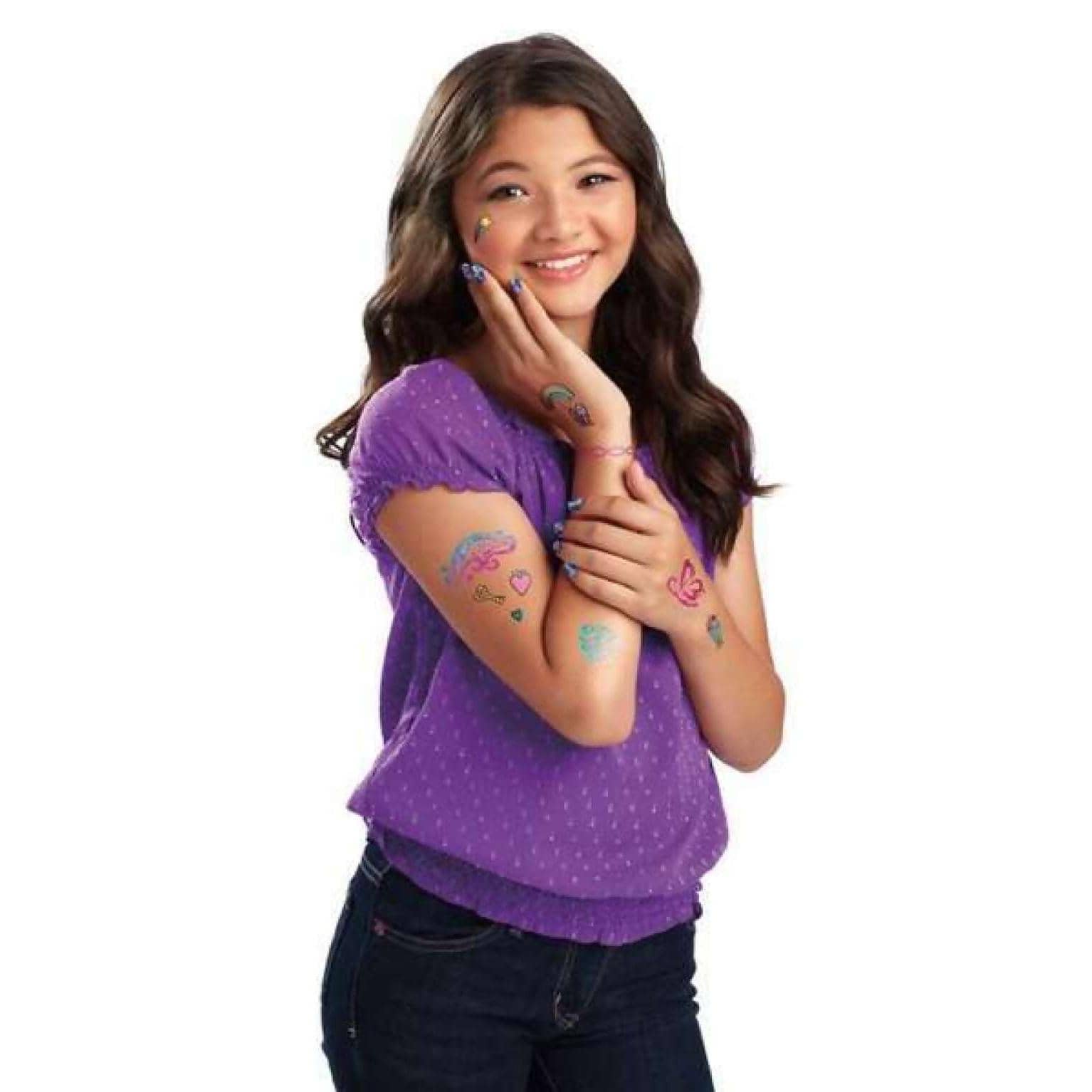 Glam It! Glitter It! And inspire kids to have fun with the New Shimmer N Sparkle Sparkling Glitter Tattoos & Nails! This creative set gives young fashionistas plenty of tools to make their own glittery nail and body art creations. It’s a perfect kit for parties, family nights, and fun with friends. Kids can practice their creativity and create their own sparkling style as they layer different designs and add gems and glitter to their nails.