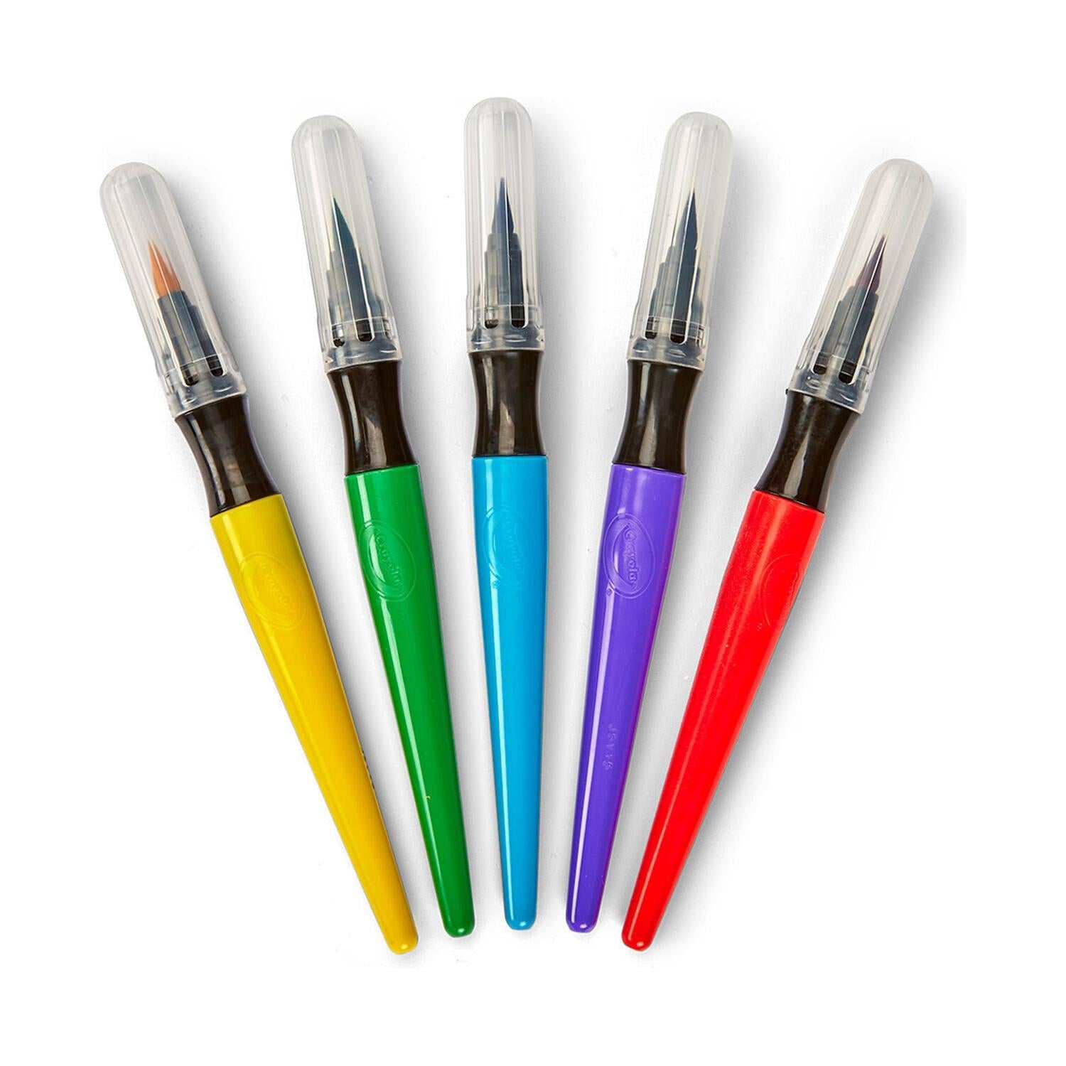 - PACKAGE CONTENTS : 5 Crayola Paint Brush Pens in Purple, Blue, Green, Yellow, and Red.