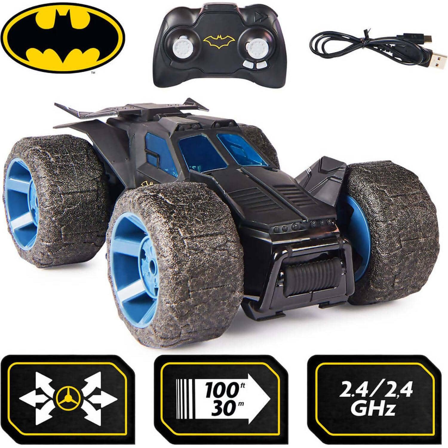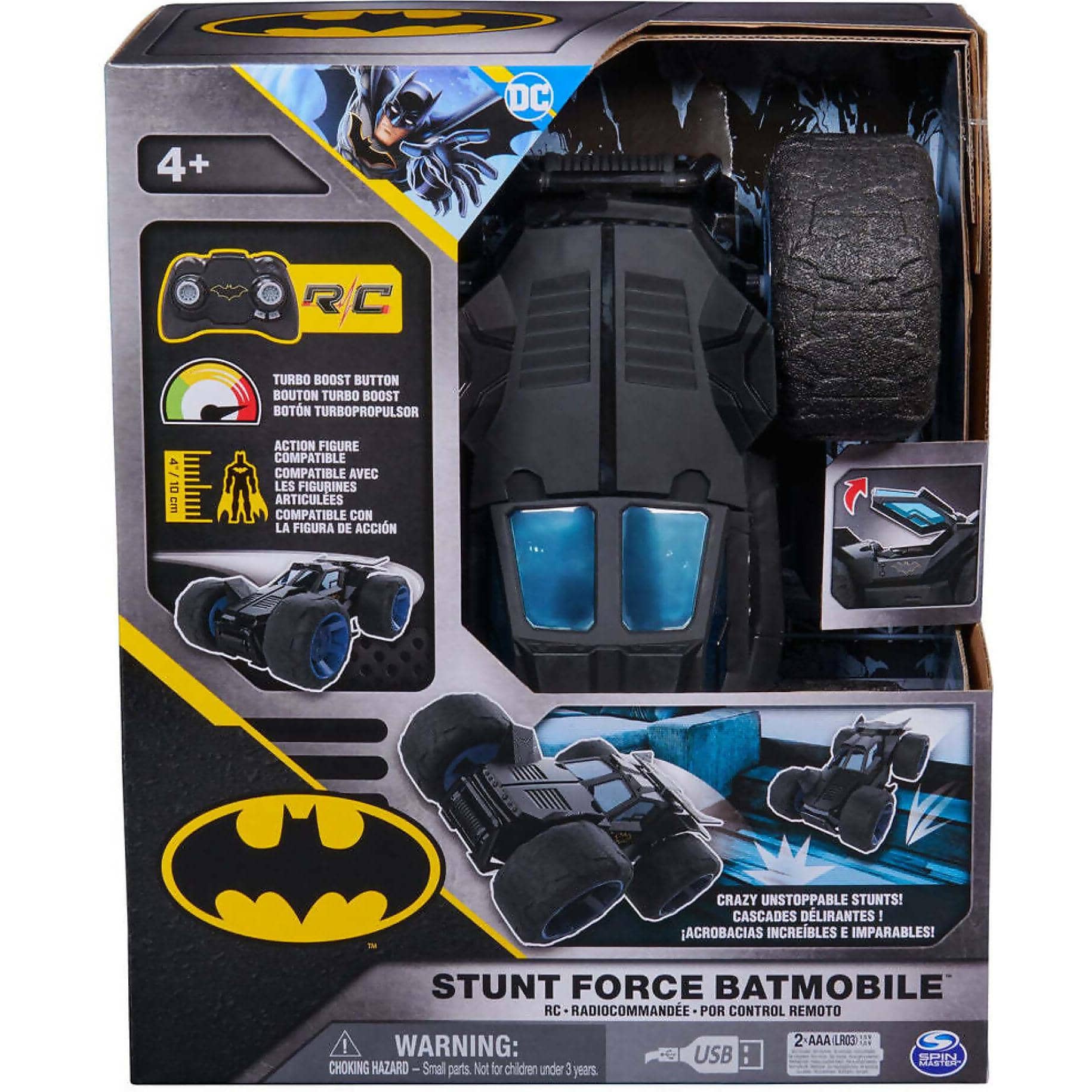 The Stunt Force Batmobile is USB rechargeable and requires 2 AAA batteries (not included). Give your child the gift of imagination and adventure with the Stunt Force Batmobile!