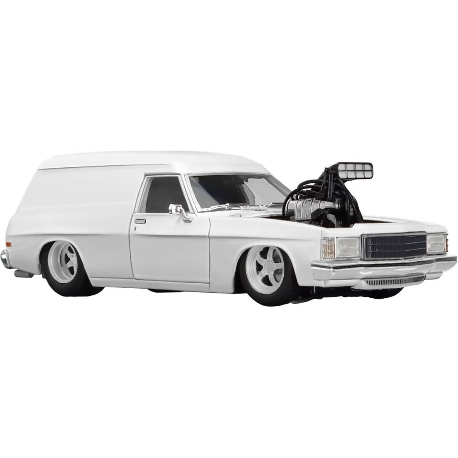 The DDA Collectibles 1:24 Scale 1975 HJ Holden Panelvan Super Charged & Slammed is a custom plastic model kit that celebrates the bold styling of Australian street machines. Featuring a sealed body with an opening bonnet, this kit reveals a finely detailed supercharged engine once assembled. Its aggressive stance and lowered profile are part of DDA’s “SLAMMED” range, designed to capture the raw energy of modified performance builds.