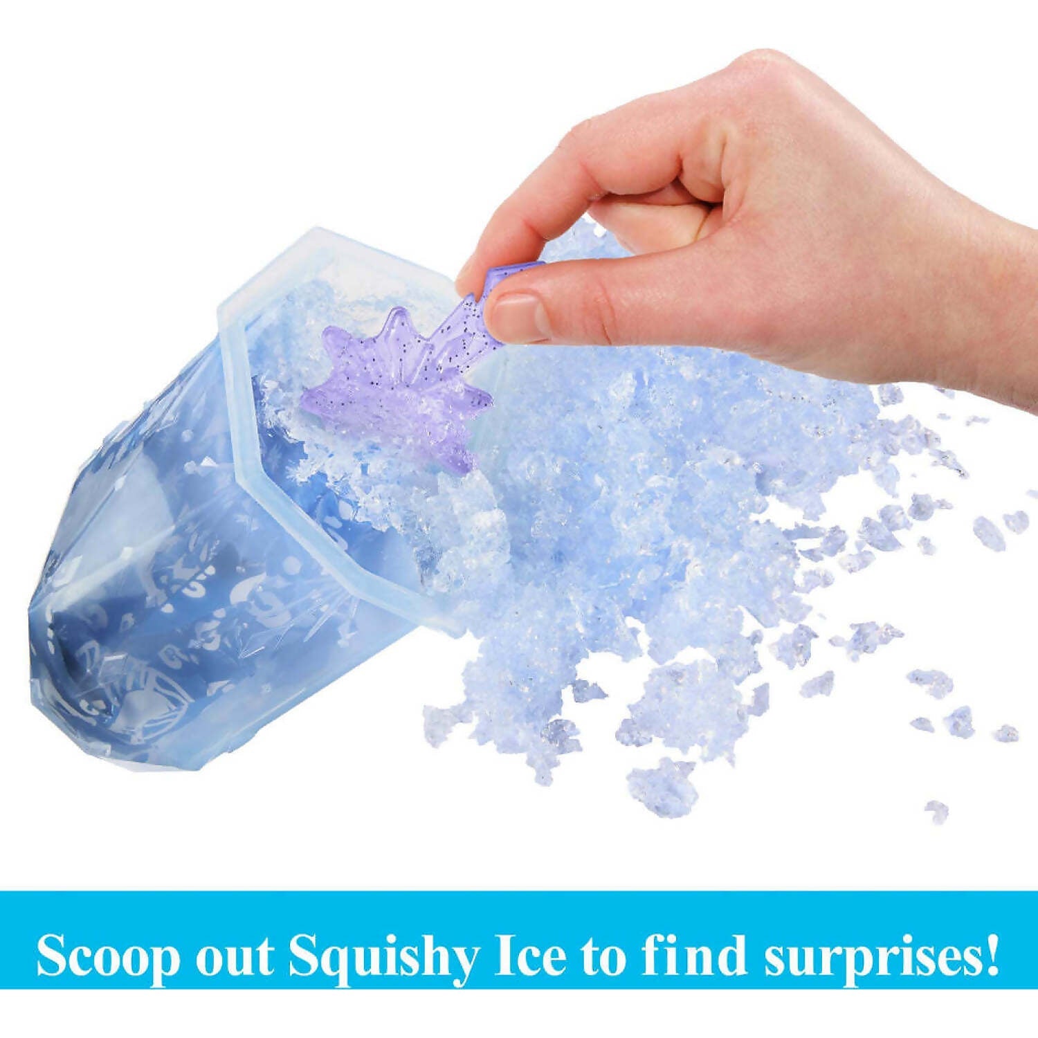 Unboxing gets a sensory spin with Disney Frozen Ice Reveal dolls! To reveal the toys inside, kids use the snowflake scoop to dig through the Squishy Ice gel. The mystery small doll will be an Anna or Elsa doll in a signature look, plus an Olaf or baby Sven character friend.