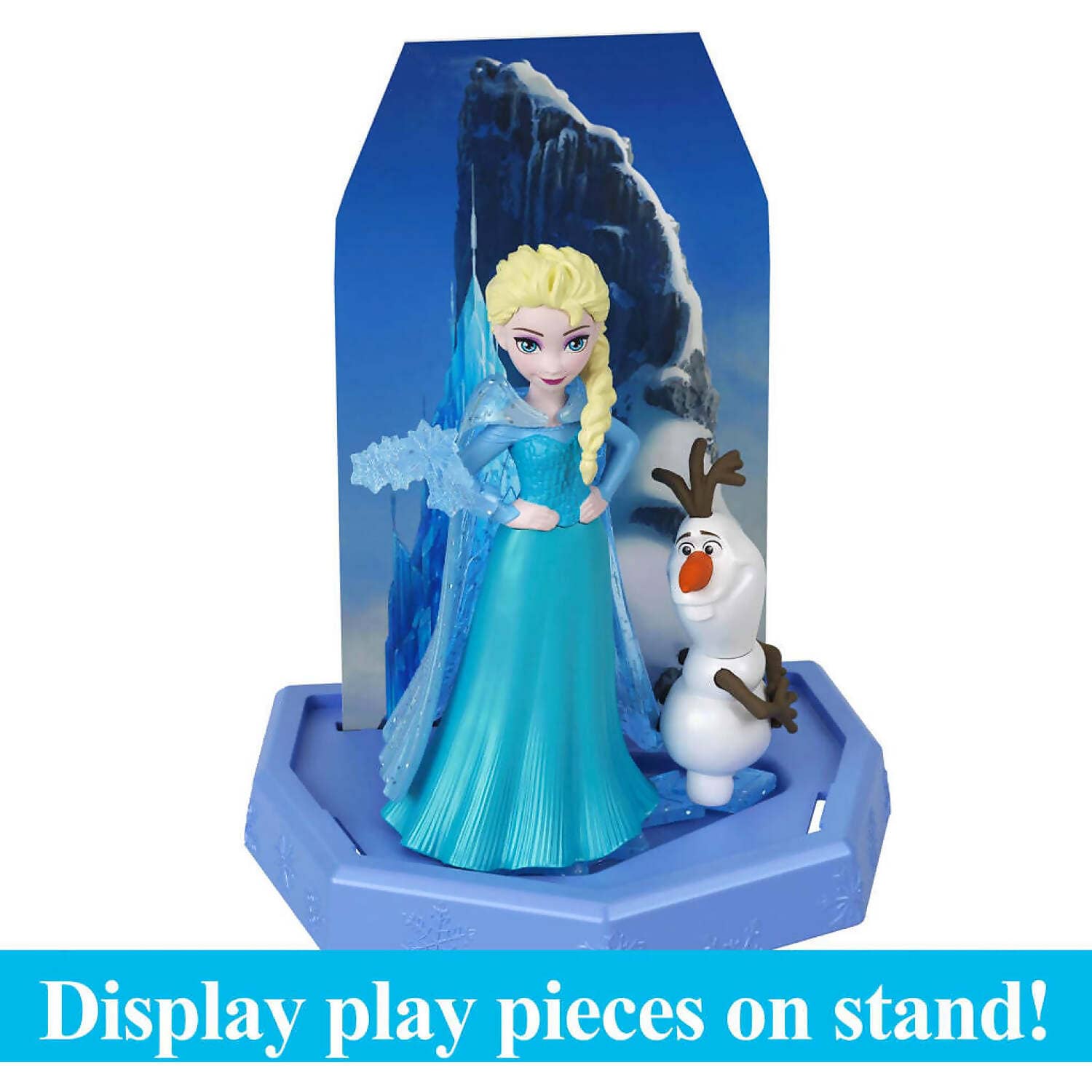 Additional surprises include a cape or hat, themed accessory and double-sided backdrop piece. For more play and display fun, kids can set up or store the doll and pieces in the ice-themed container.