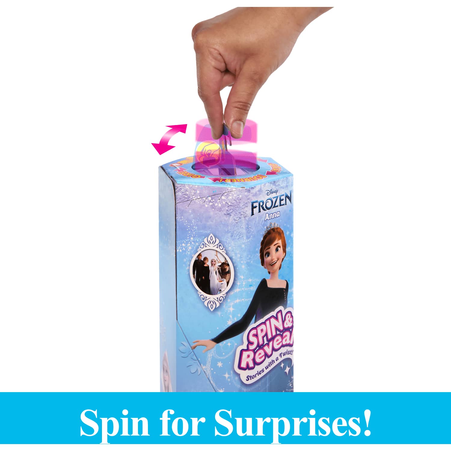 - Inspired by the animated character from Disney's Frozen, Spin & Reveal Anna doll reveals surprises with each magical twist!