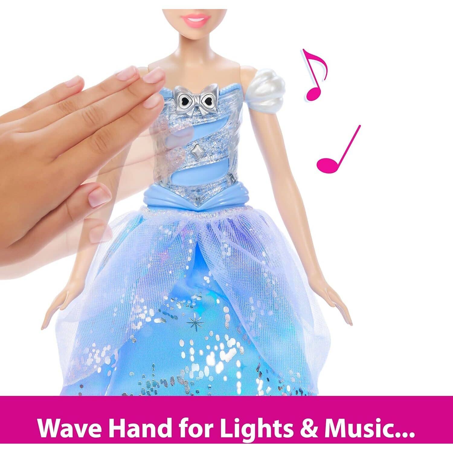 The Disney Princess - Enchanted Ballgown Cinderella Sounds & Magic Wand Activation doll brings the magic of Cinderella’s transformation to life with dazzling lights and sounds. Perfect for imaginative play, this enchanting toy is a must-have for Disney fans.