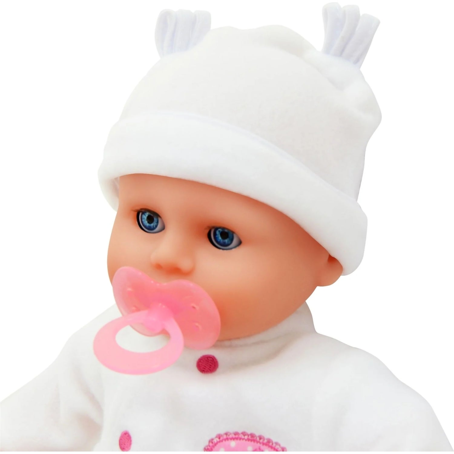 DollsWorld - Little Treasure Baby Doll & Accessories White Outfit - Soft Bean Bodied Doll 38cm