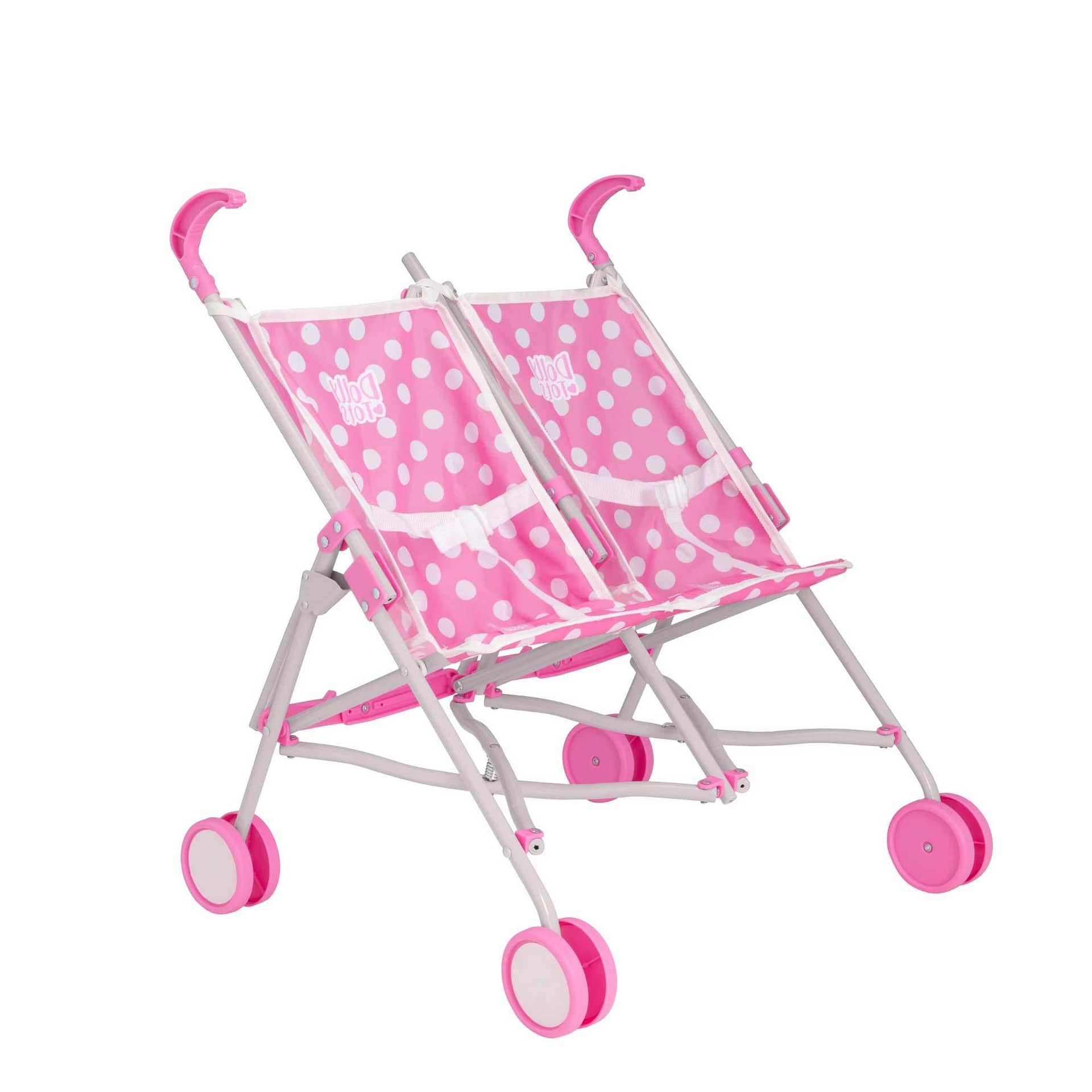 The Dolly Tots Twin Stroller is an ideal pram for accompanying two dolls on all of your child's exciting journeys. It comes with a handle height of 55.5cm and boasts double wheels for effortless steering.