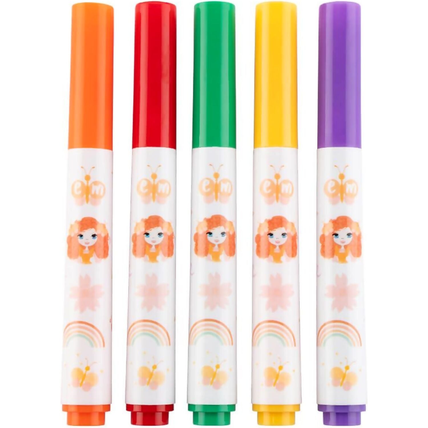 Pre-schoolers can get creative and colour their world with this fun set of 5 Emma Memma chunky marker pens in yellow, orange, papaya, green and purple. Presented in a branded clear wallet with an orange gemstone handle, the markers can easily be packed away for safe-keeping. Perfect for on-the-go creative adventures! Hang-tag attached.