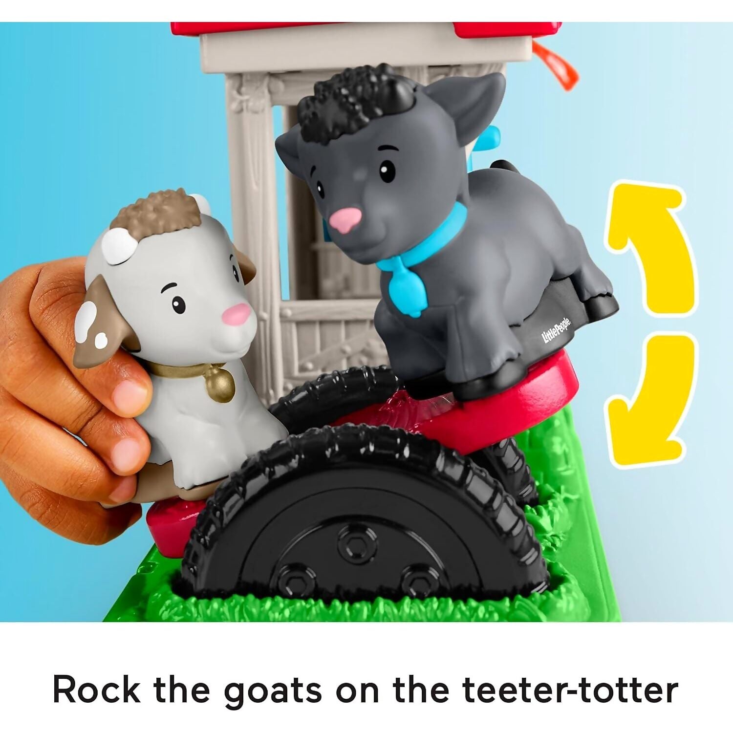 Toddlers can enjoy hours of imaginative fun with the Little People Feed & Play Goat Yard Playset from Fisher-Price. This charming farm-themed set includes two friendly goat figures, a bottle play piece for feeding role-play, and a teeter-totter for active storytelling. The goat house features a fold-down door that transforms into a ramp, making it easy for little ones to load their animals in and out.