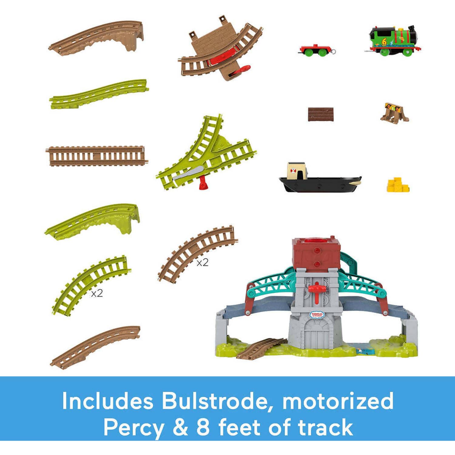 The Which-Way Bridge includes a kid-controlled drawbridge and a button that activates sound effects and a sing-along song. Percy is motorised and races around the 8 feet of track, delivering cargo from the docks across Sodor. Compatible with other Thomas & Friends track systems (excluding wood), this set encourages creativity and fine motor skill development.