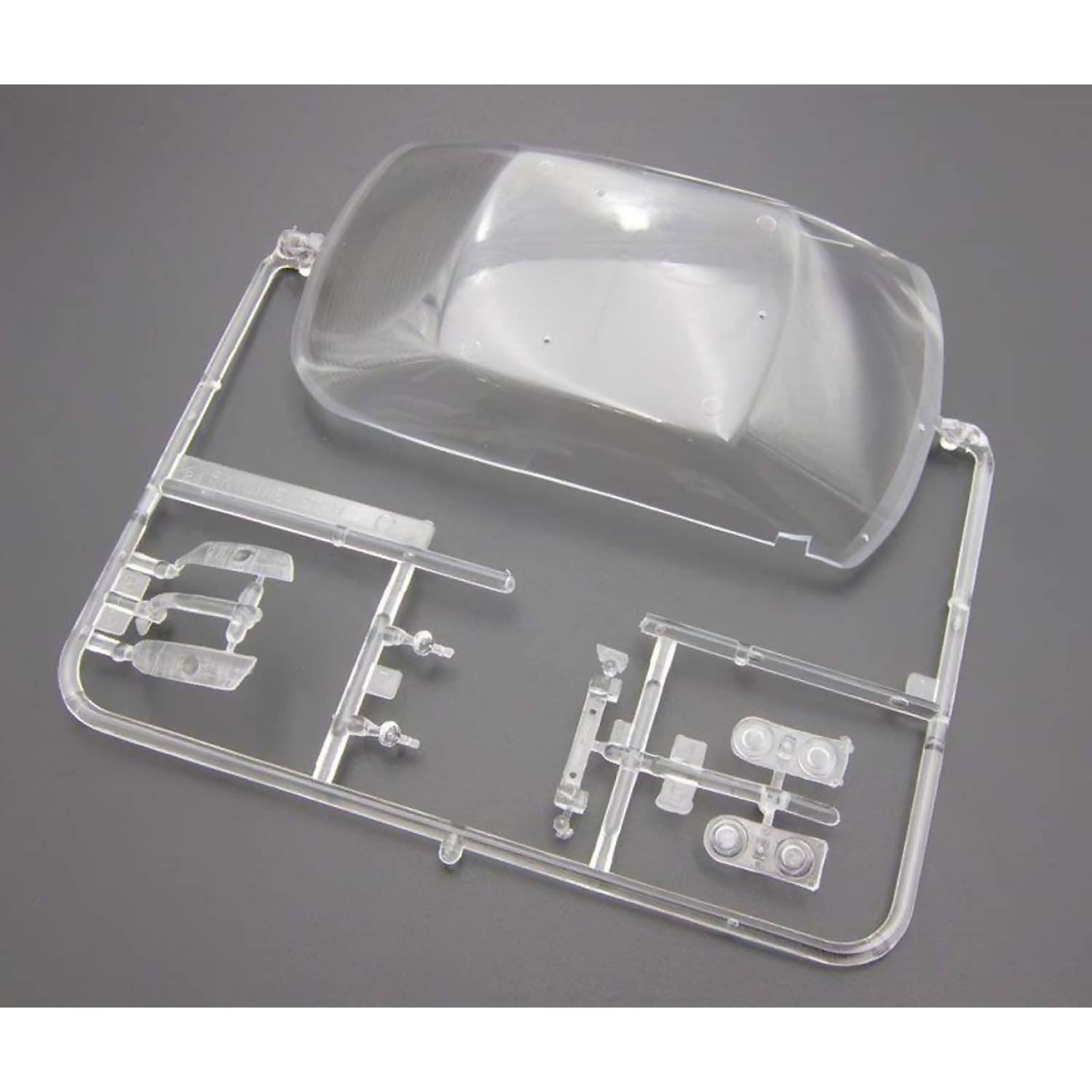 - Decal set with sponsor logos, plates, and interior gauges