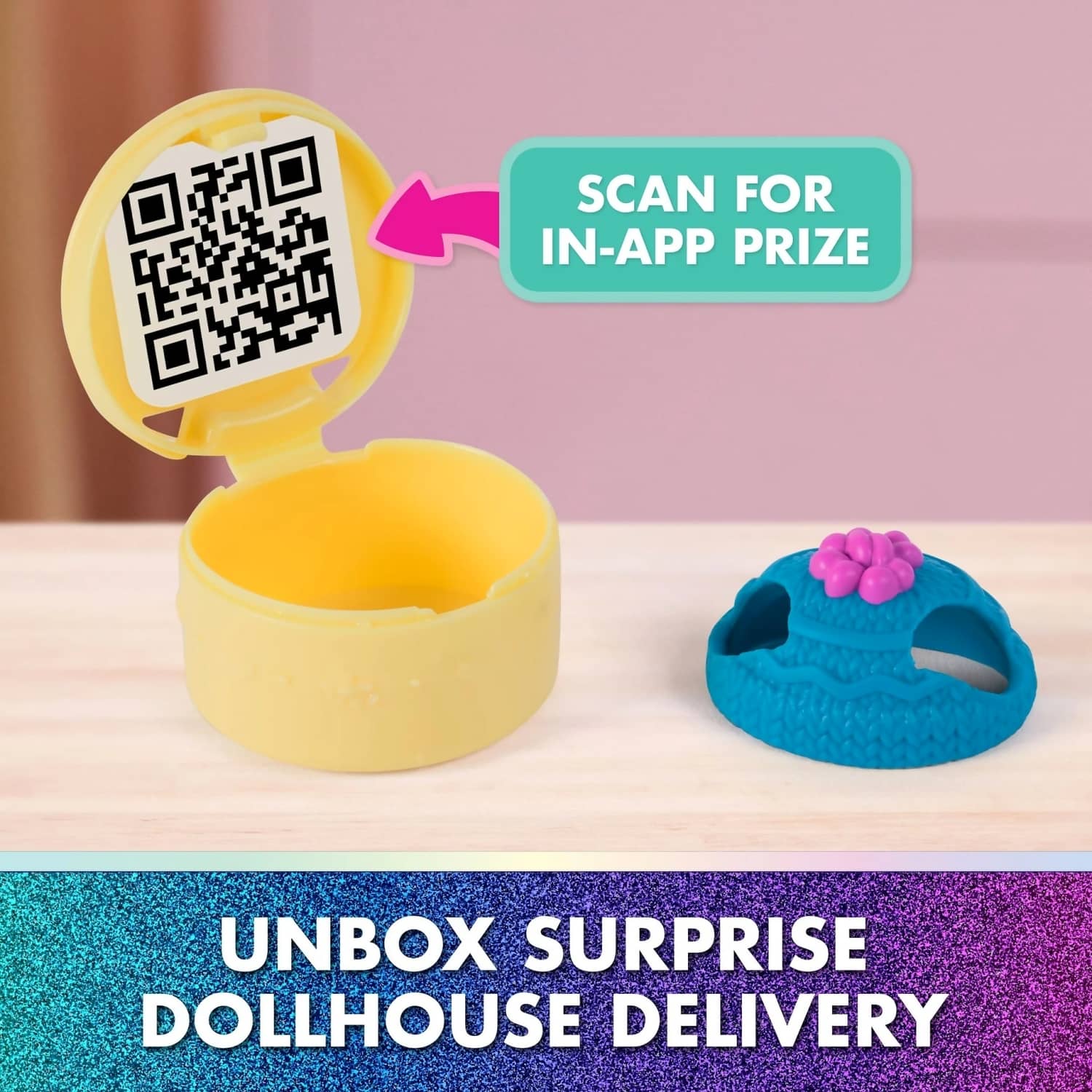 This 12-piece playset is over a foot wide & 10 inches tall. Kids will love using peggable popsicles to climb whipped cream mountain & uncover hidden activations, by pushing the Paw Bump Magic buttons, to reveal Cookie Bobby, or spin the whipped cream to reveal Chumsley's hideout. With a wobbly bridge and wobbly donut, the possibilities for play are endless. Unbox the Dollhouse Delivery, like Gabby does in the show, to find a surprise accessory, then scan the QR code to unlock a surprise in the Gabby's Dollhouse app.