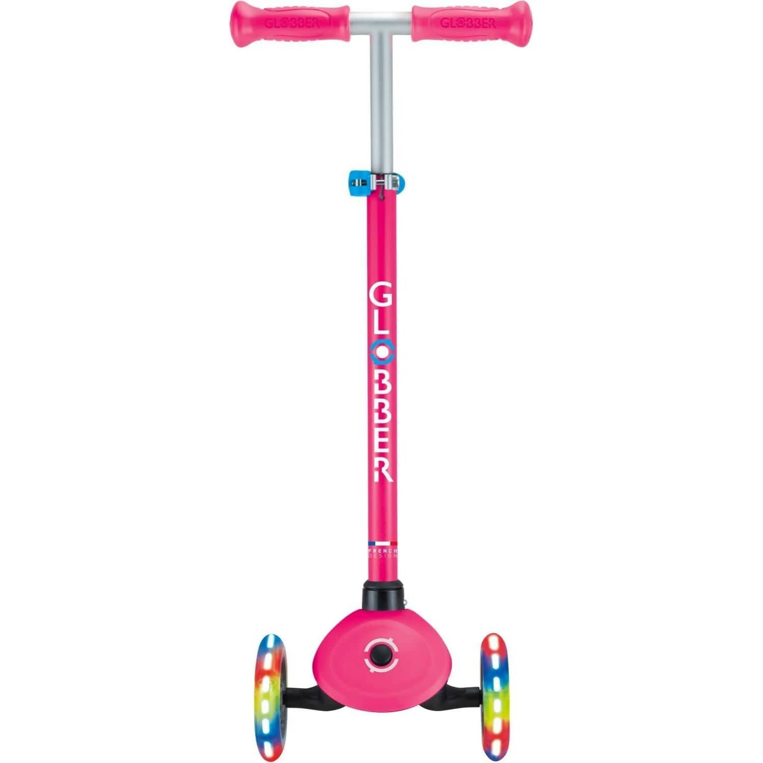 .Globber Primo V2 Scooter With Lights And Griptape - Fuchsia Pink With Sky Blue