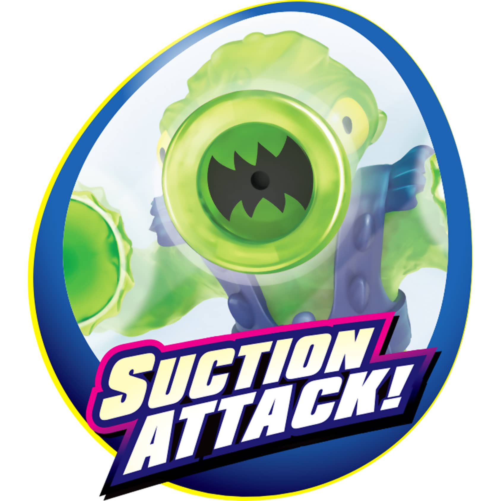 Squidor has emerged from the depths of the Cursed Goo Sea to try and defeat the Heroes of Goo Jit Zu. Squidor is equipped with a 'Suction Attack' that enables his mouth and hands to stick onto his enemy. Once he gets a hold, it's very hard for his opponent to get away! Will Pantaro be able to break Squidor's vice grip?