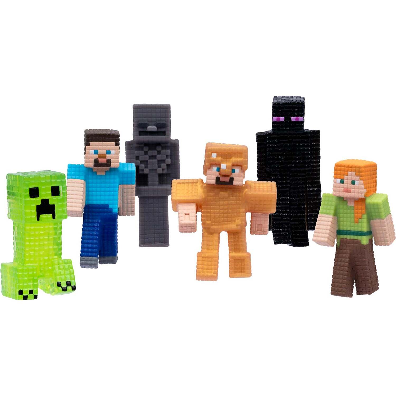 This exclusive pack includes six Super Stretchy Minis, featuring fan favourites Steve, Alex, Enderman, Skeleton, Creeper and the rare Gold Steve. Perfect for collectible fun and imaginative Minecraft adventures!
