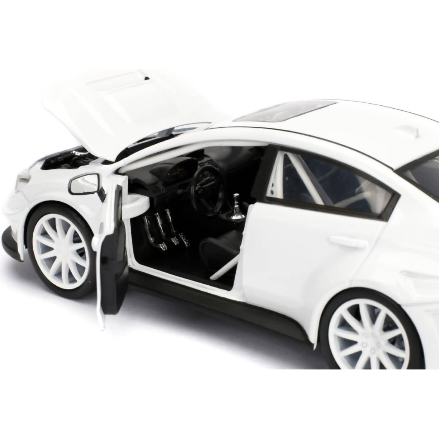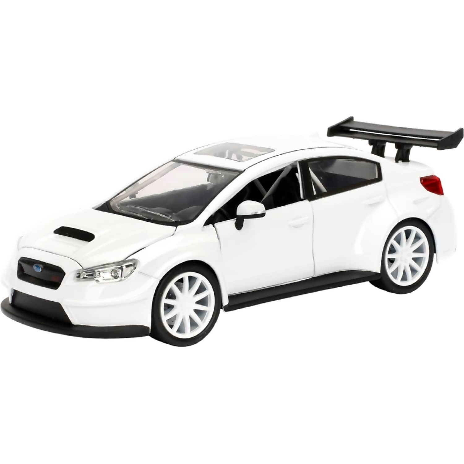 Crafted from durable die-cast metal, the model features opening front doors, bonnet, and boot, revealing a detailed interior and engine bay. Real rubber tyres and a precision-finished body enhance its realism and display appeal. Whether you're recreating scenes or building your Fast & Furious collection, this WRX STI delivers performance and style in miniature form.