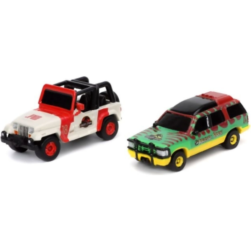 - Includes 1.65 diecast Jeep Wrangler and Ford Explorer vehicles