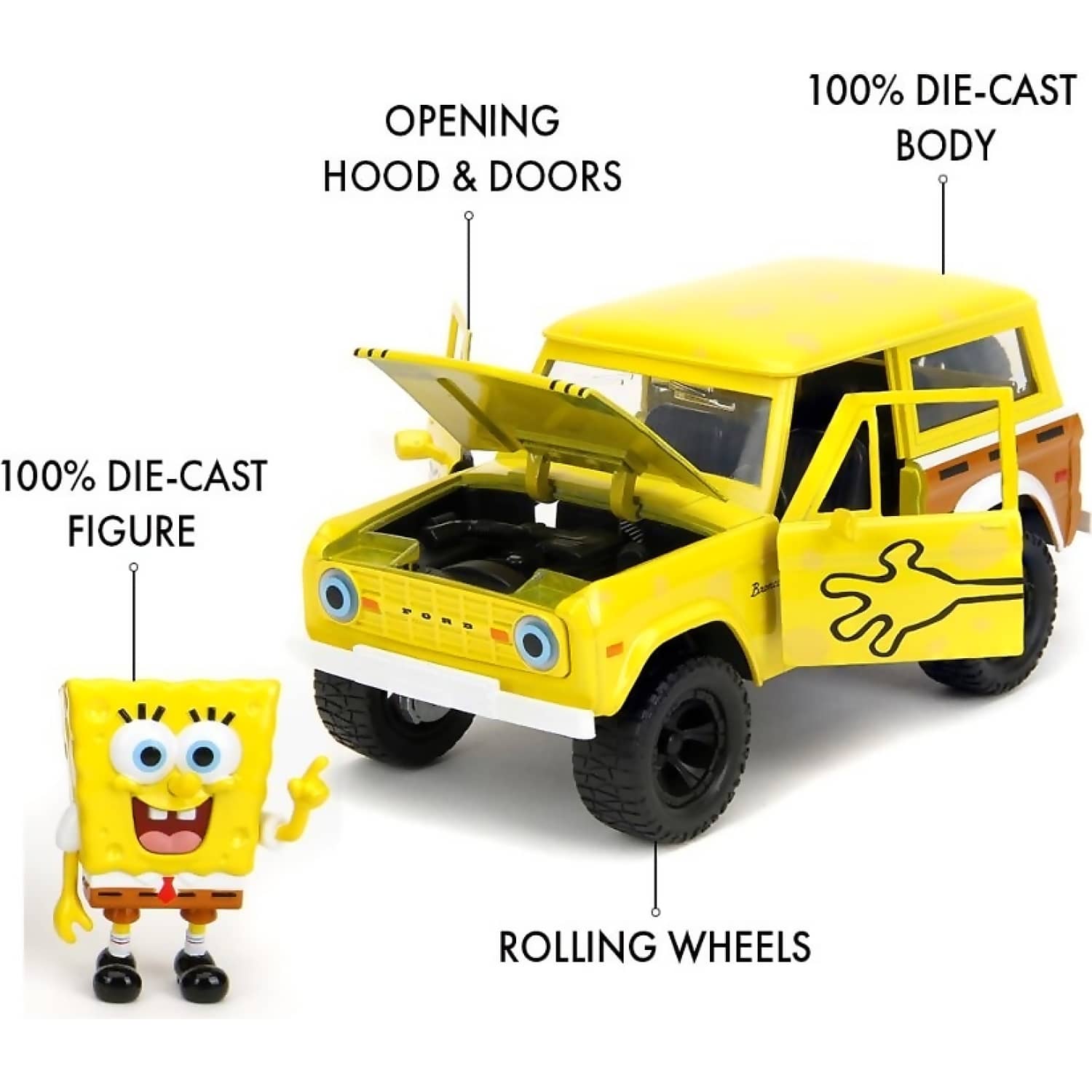 Jada Toys - Spongebob Squarepants 1972 Ford Bronco with Spongebob 1:24 Scale Diecast Vehicle Set