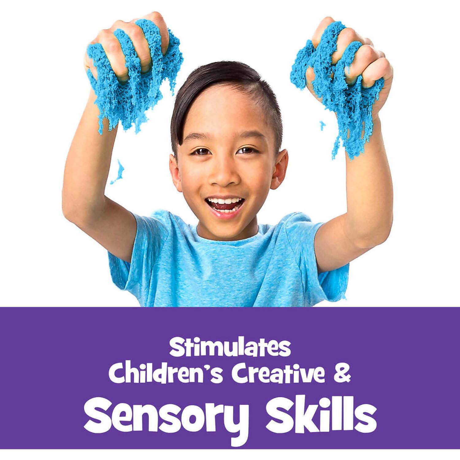 No matter how you use it, sensory sand provides hours of tactile fun. It flows through fingers like real beach sand and leaves hands completely dry. When pressed together, it keeps its shape. It`s so satisfying, you won`t be able to put it down! The unique formula of this mesmerizing, magic sand sticks to itself and not to kids for easy cleanup and storage, and it never dries out so you can create again and again. More than just great fun, moldable sand is a tactile, sensory kids toy that can help develop your child`s fine motor skills.