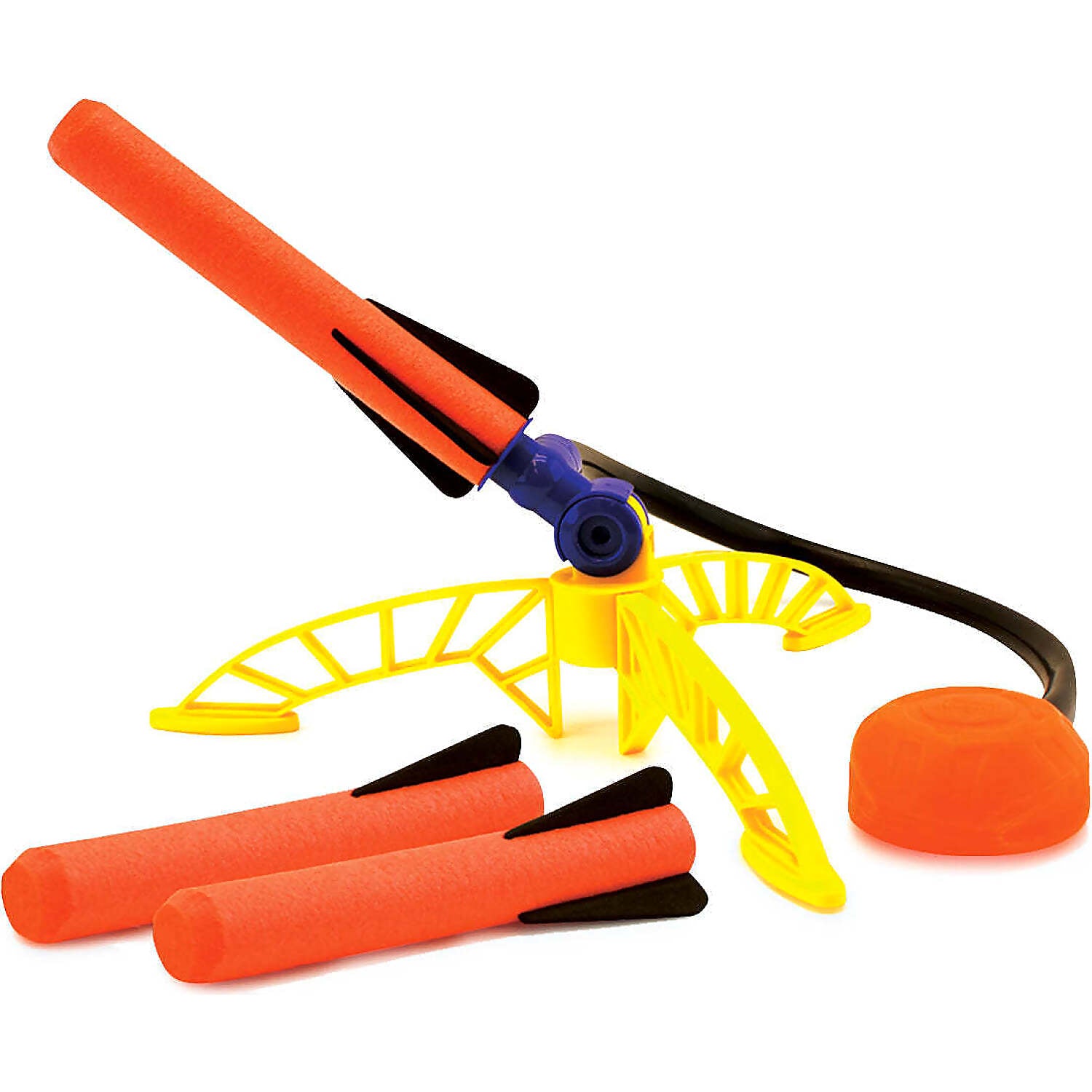 - Includes three soft foam rockets