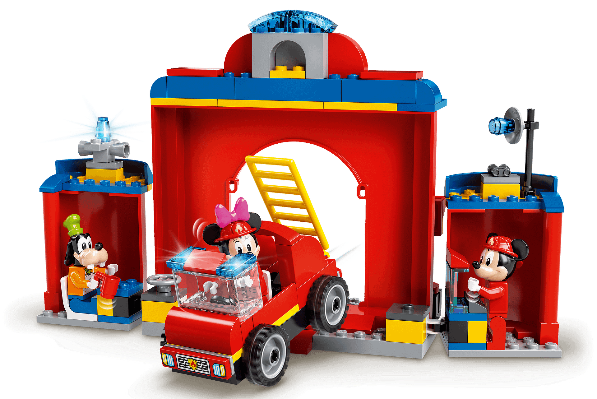 - The cool LEGO® ǀ Disney Mickey & Friends Fire Truck & Station (10776) toy set gives youngsters a fun set designed to grow role-play and building skills as they fight fires or rest at the fire station.