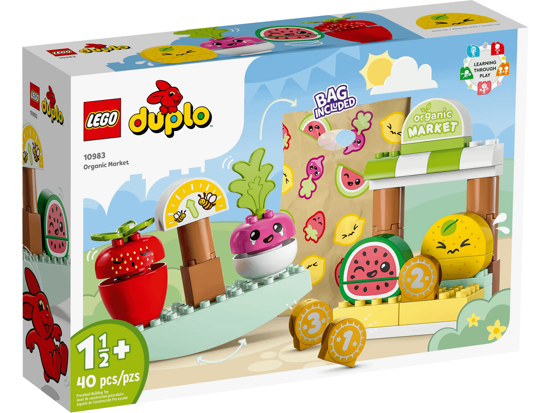 - Farmers market toy for toddlers – Introduce little builders aged 18 months and up to fun shopping play with the LEGO® DUPLO® My First Organic Market (10983) toy