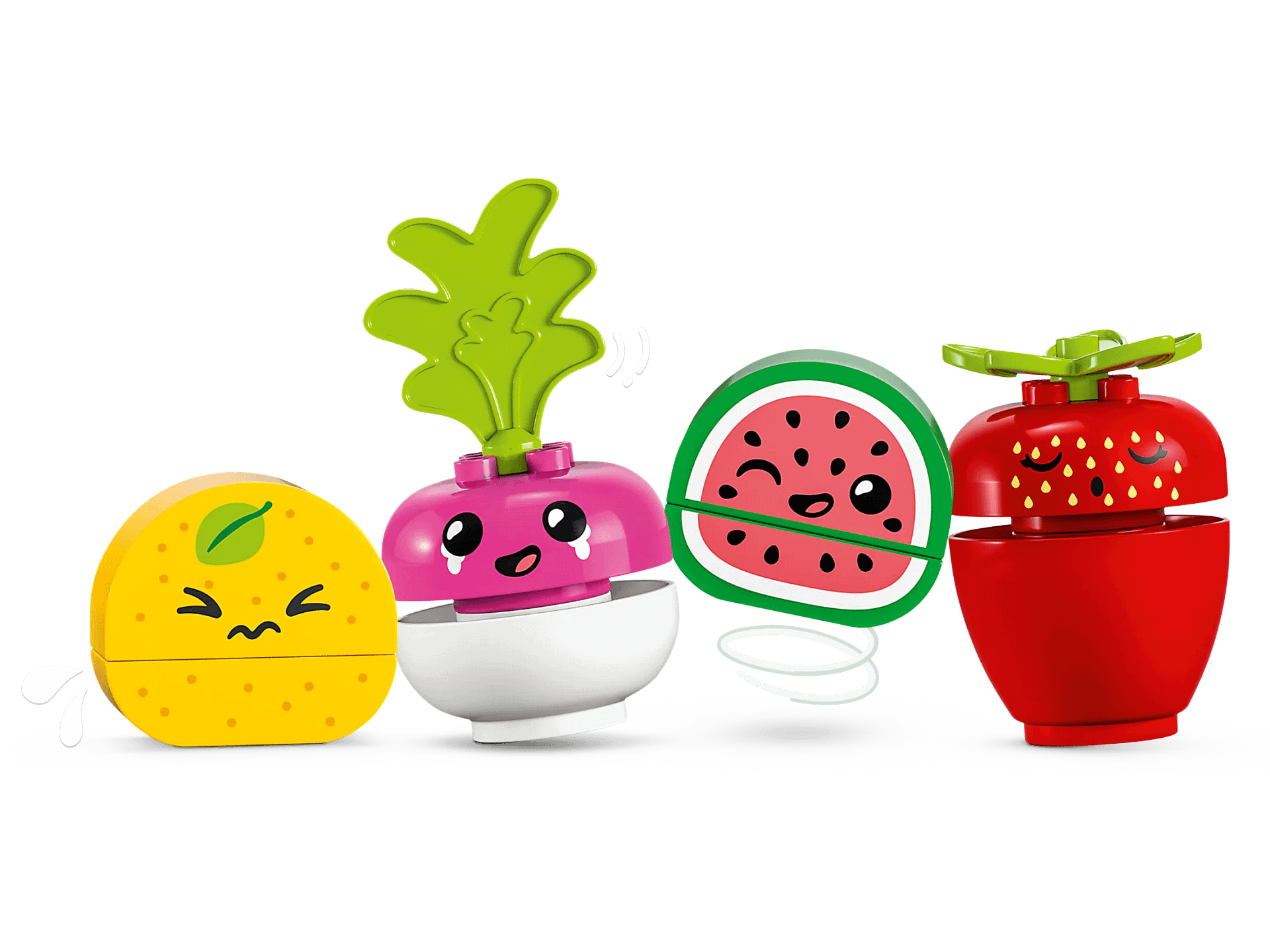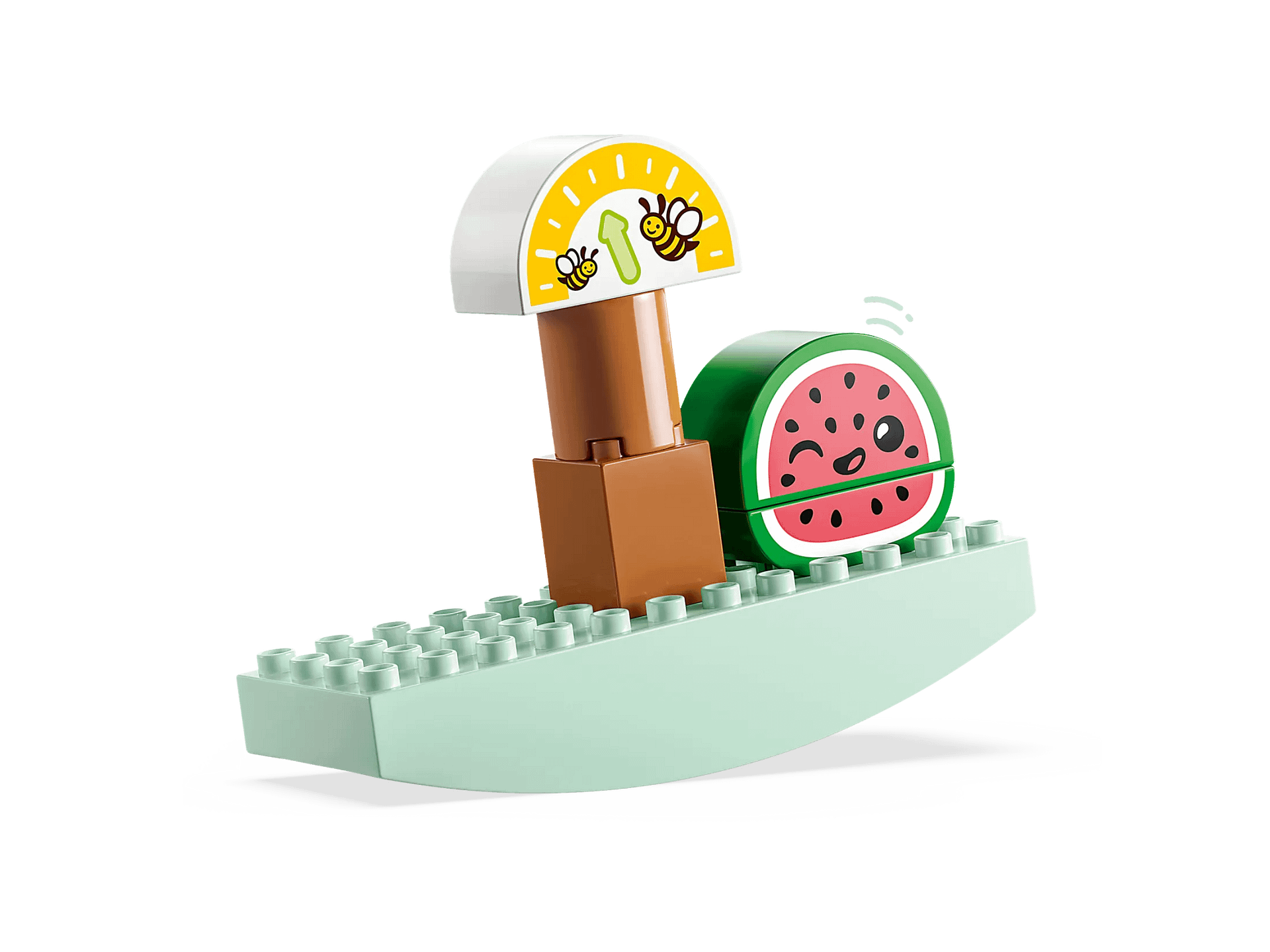Kids can learn about balance as they stack the radish, strawberry, lemon and watermelon toys. All LEGO DUPLO sets are designed to develop self-expression – in this one, each piece of food wears a different expression to bring the creative play to life!