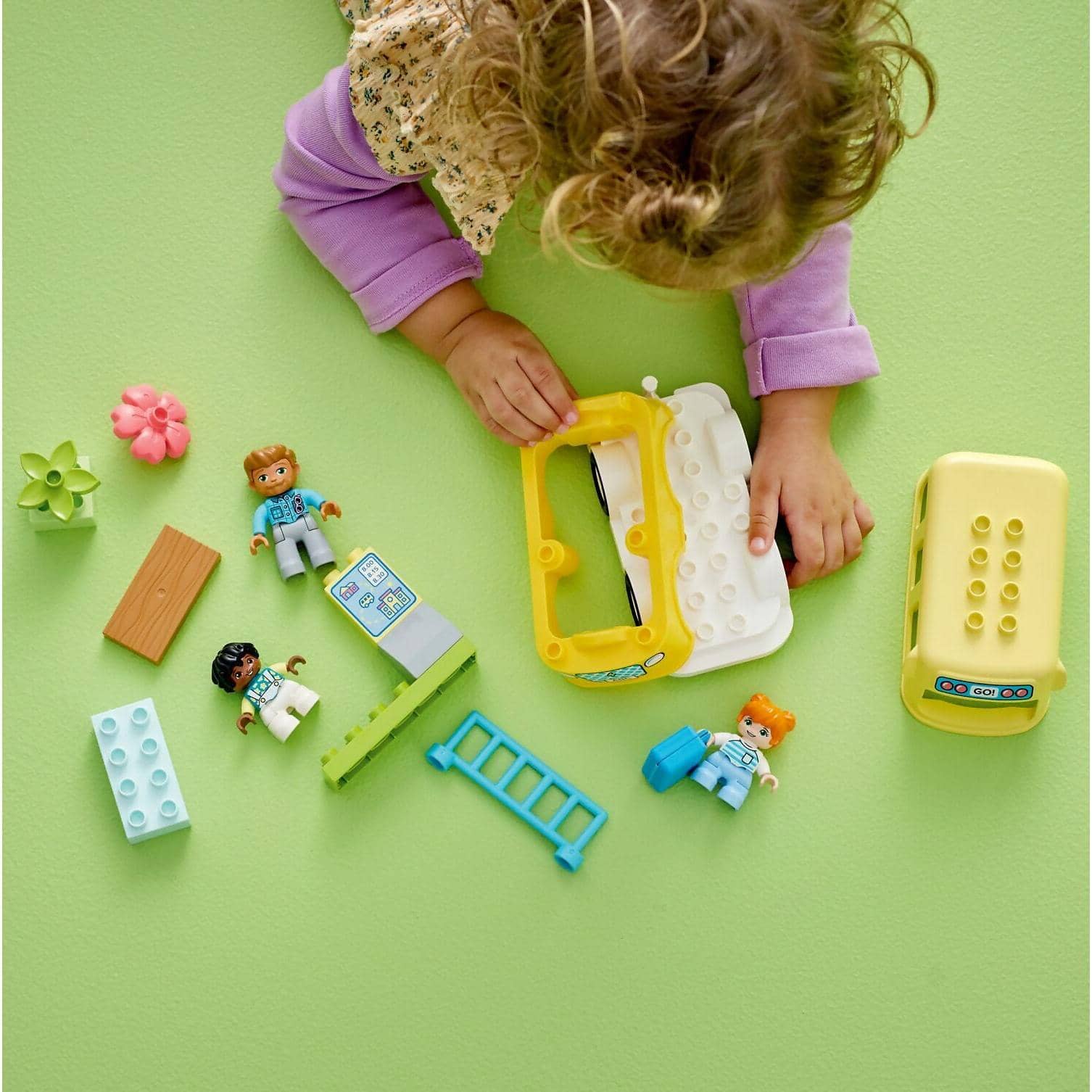 - Skill-building school bus toy – Toddlers aged 2+ embark on an everyday adventure and learn fine motor and social skills as they hop aboard the LEGO® DUPLO® Town The Bus Ride (10988) toy