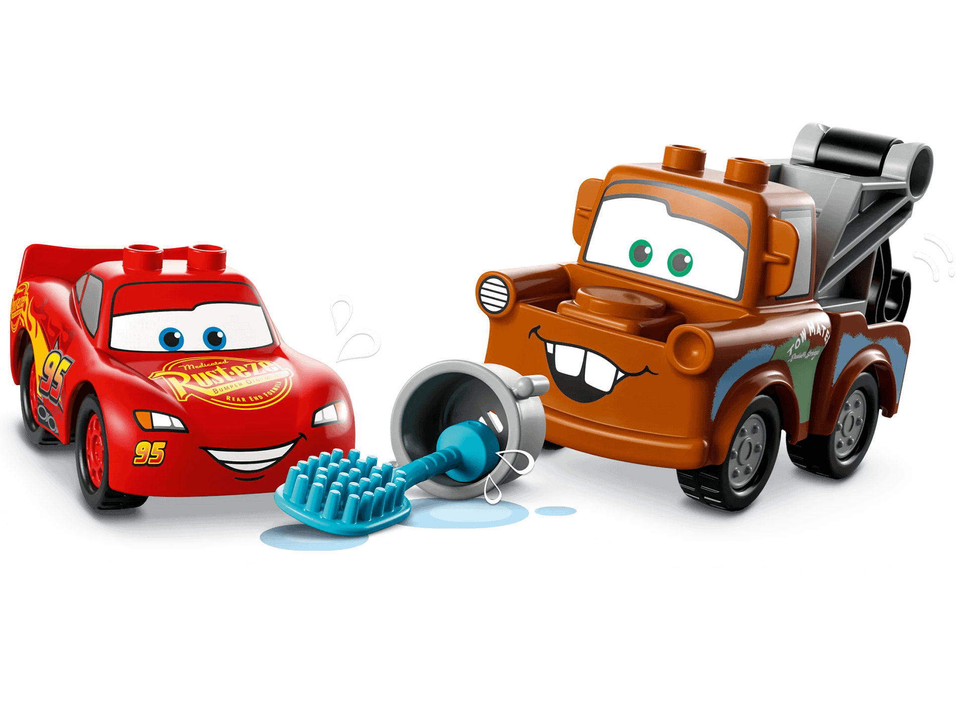 - LEGO® DUPLO® car wash fun for little builders – Transport kids to the world of Disney and Pixar’s Cars movies with Lightning McQueen & Mater’s Car Wash Fun (10996) playset