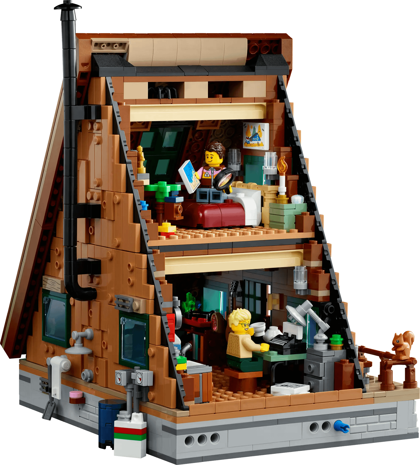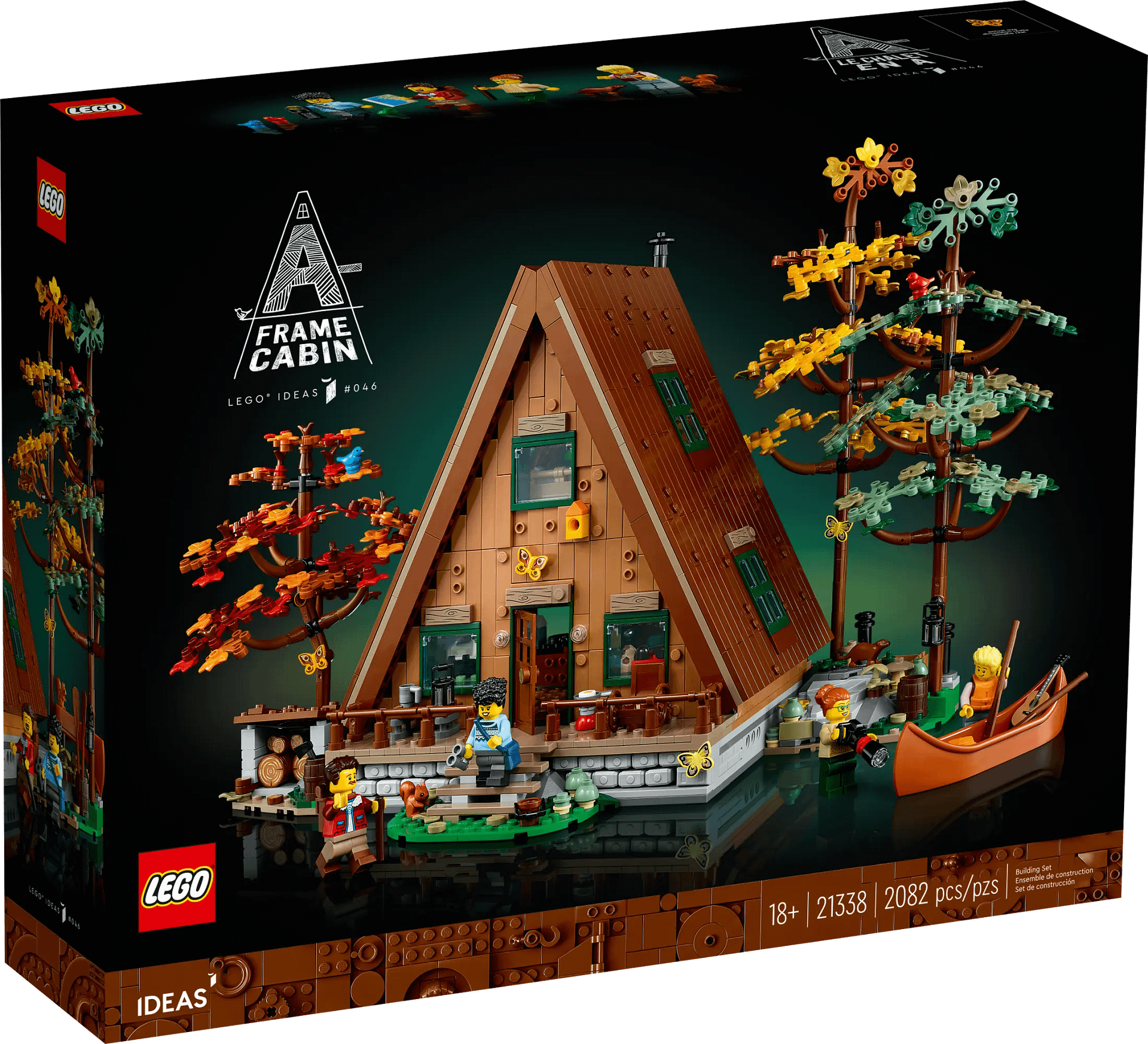 - LEGO® Ideas A-Frame Cabin (21338) display model – Escape the everyday and feel closer to nature as you build a detailed LEGO brick version of a classic A-Frame Cabin rural home