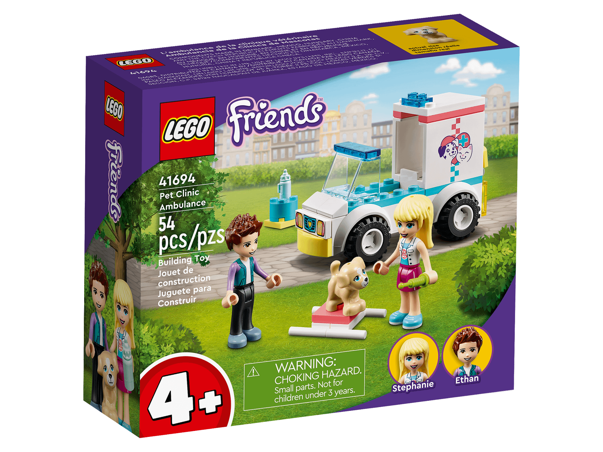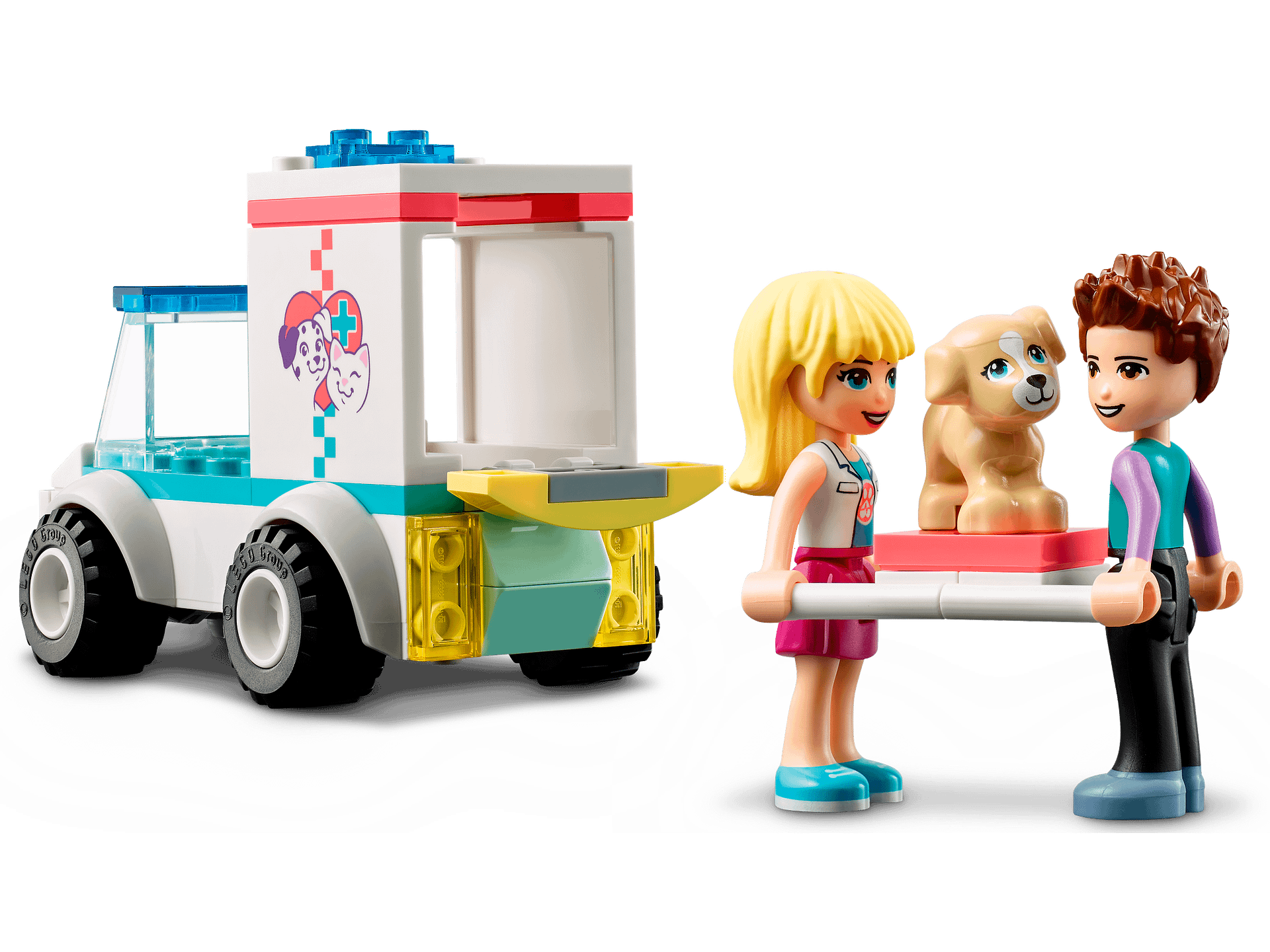 - Build, play and nurture – Great-value LEGO® Friends Pet Clinic Ambulance (41694) toy teaches kids aged 4 and up to build while they express their love of animals by caring for a poorly pup