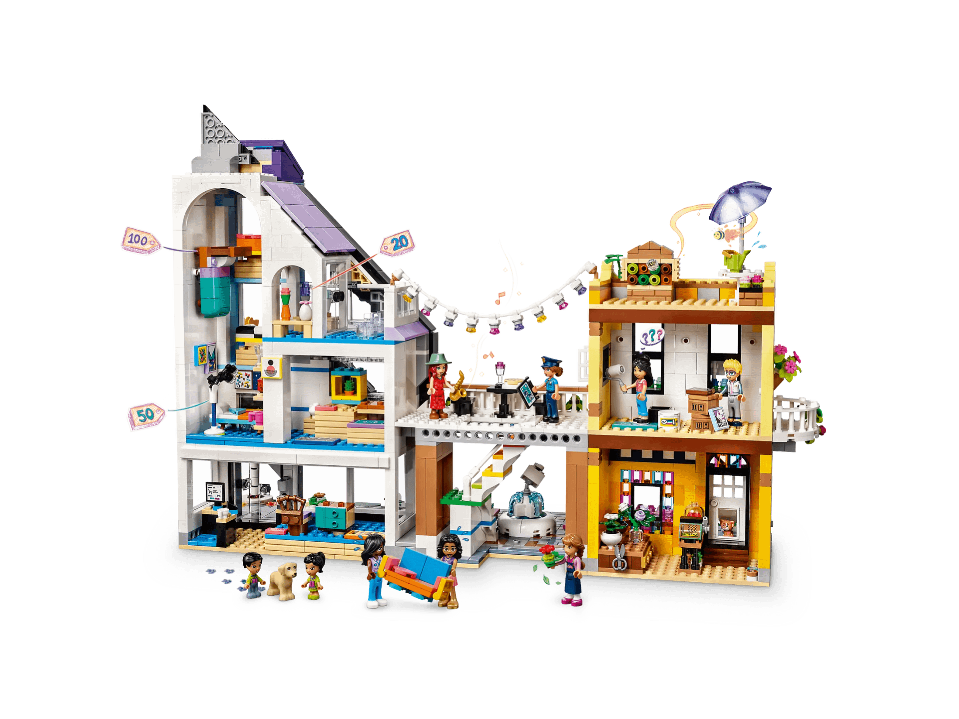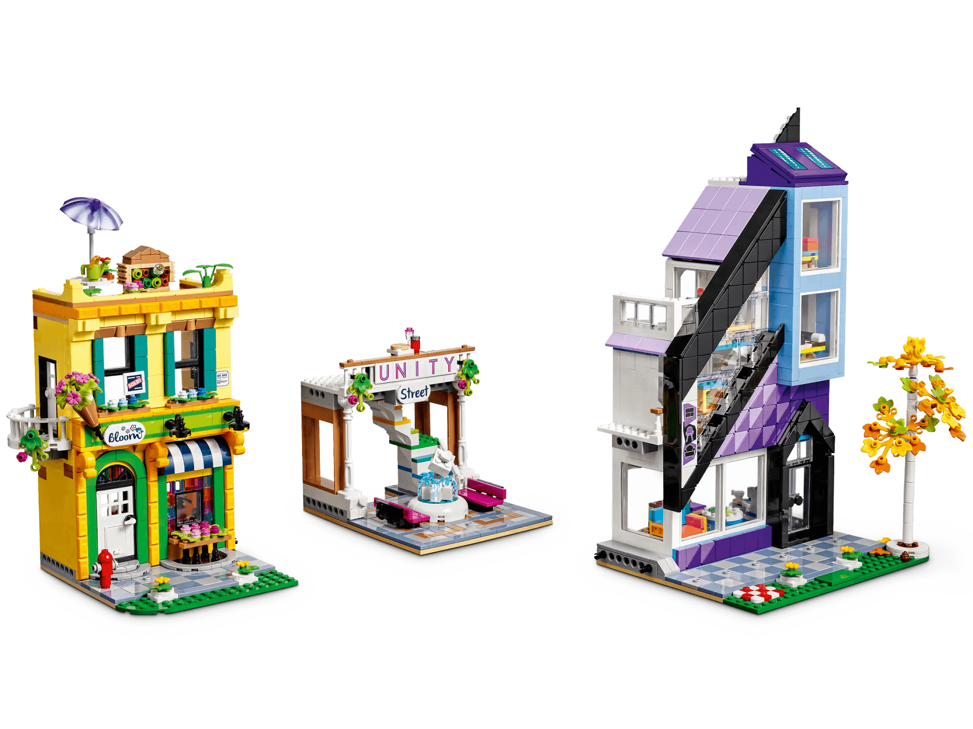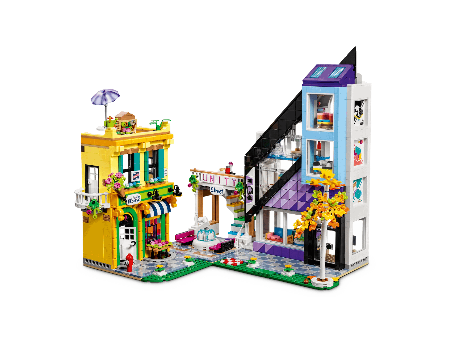 - An eye-catching model for display – Creative kids can build and customize a detailed apartment and stores model with LEGO® Friends Downtown Flower and Design Stores (41732) set