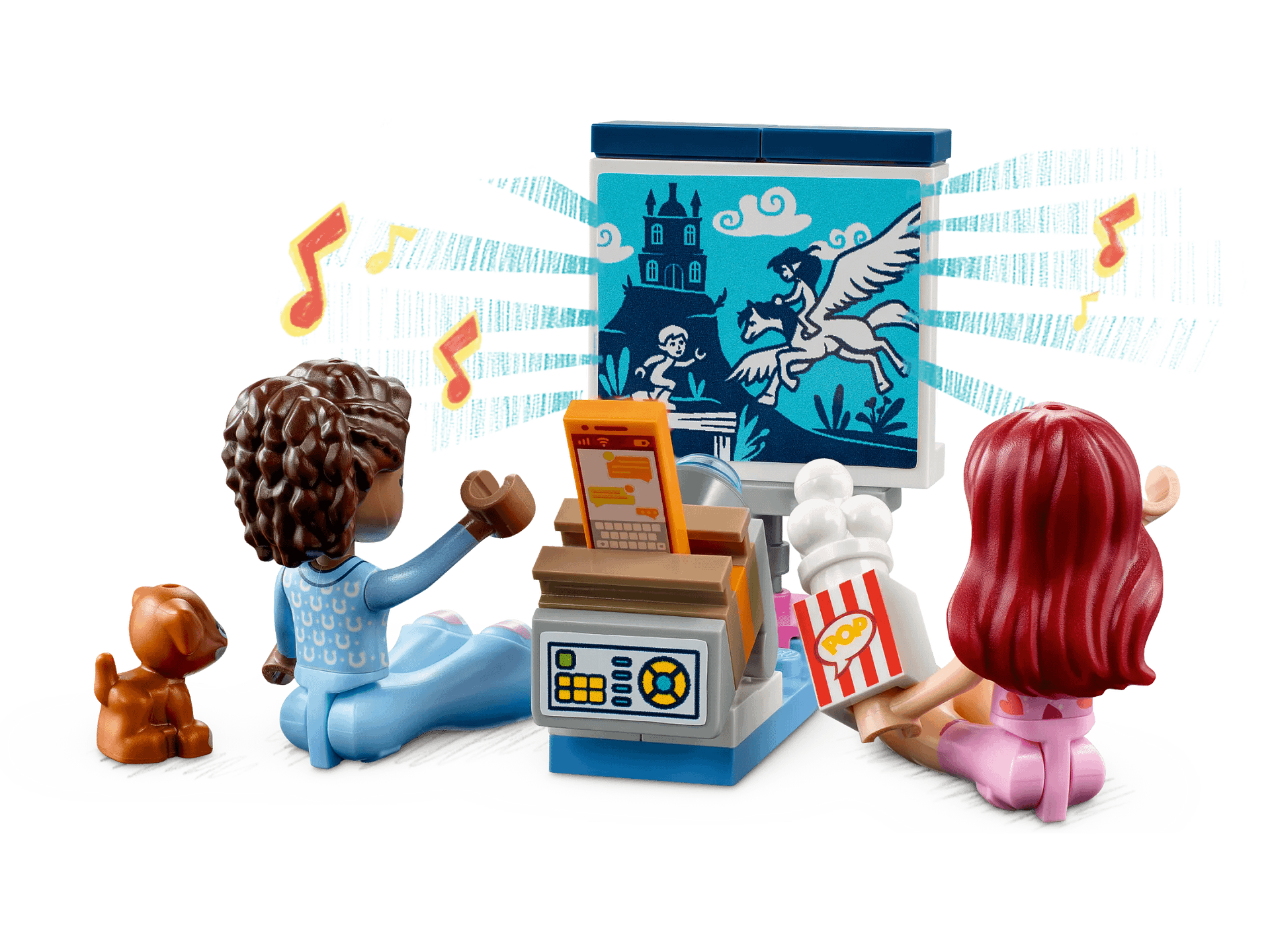 Kids aged 6+ can create their own fun stories with this LEGO® Friends Aliya's Room (41740) building set. There's lots to explore as Paisley and Aliya write stories together before their sleepover. The room reflects Aliya's studious nature with accessories including school papers, a swivel chair, laptop, book, lamp and a trophy. Kids will love the extra touches like the F-graded school paper that Aliya has hidden at the bottom of her stack of A grades! Perhaps Paisley can help her learn not to be so hard on herself. When it's time to relax, there's a big screen for movies and dog toy accessories for playtimes with Aliya's puppy.