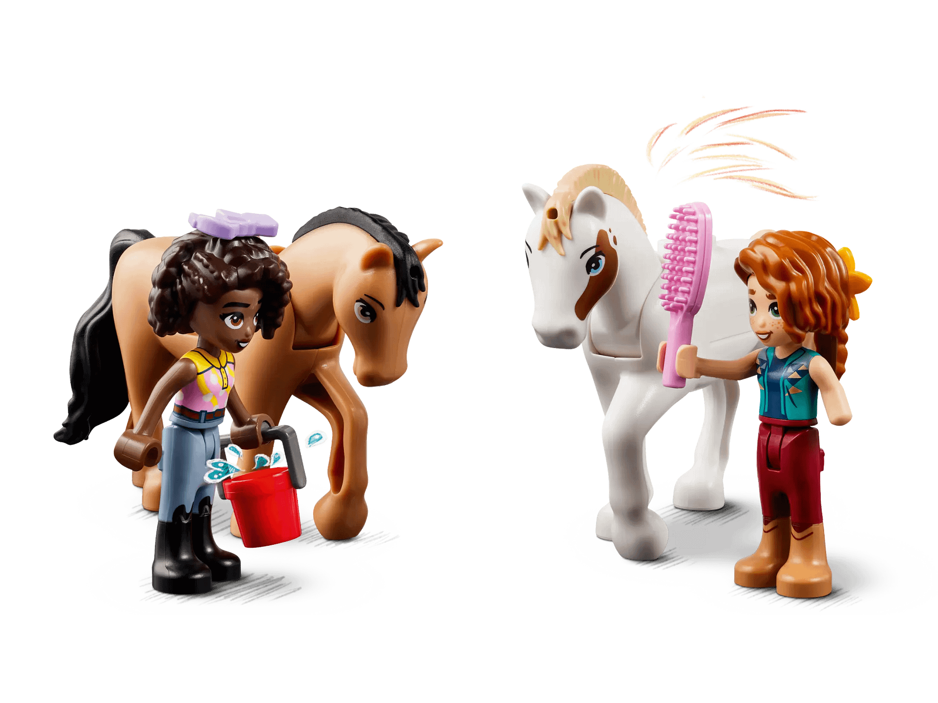 - 2 mini-dolls and accessories – The set comes with LEGO® Friends characters Autumn and Aliya, plus 2 horse characters and lots of horse-care accessories