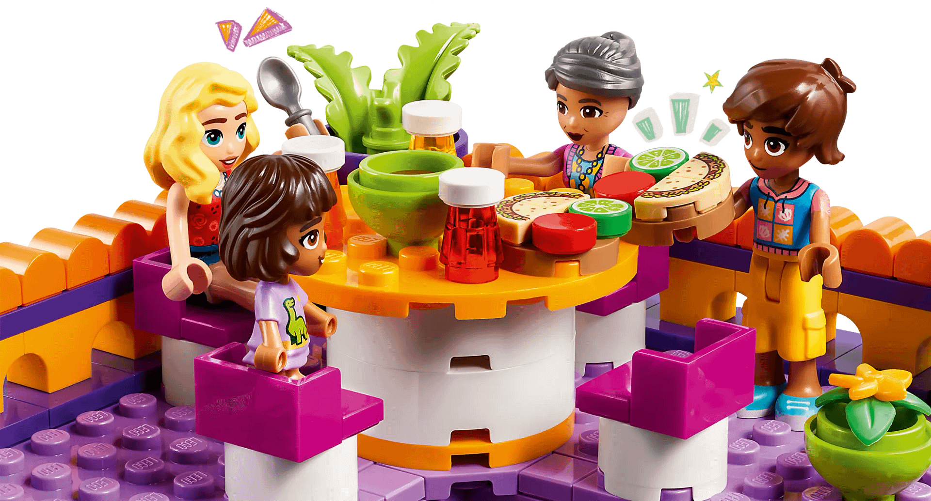 - 5 characters and accessories – The set comes with LEGO® Friends characters Leo, Alba, Abuelita, Churro the cat and a customer called Matilde, plus lots of accessories for role play
