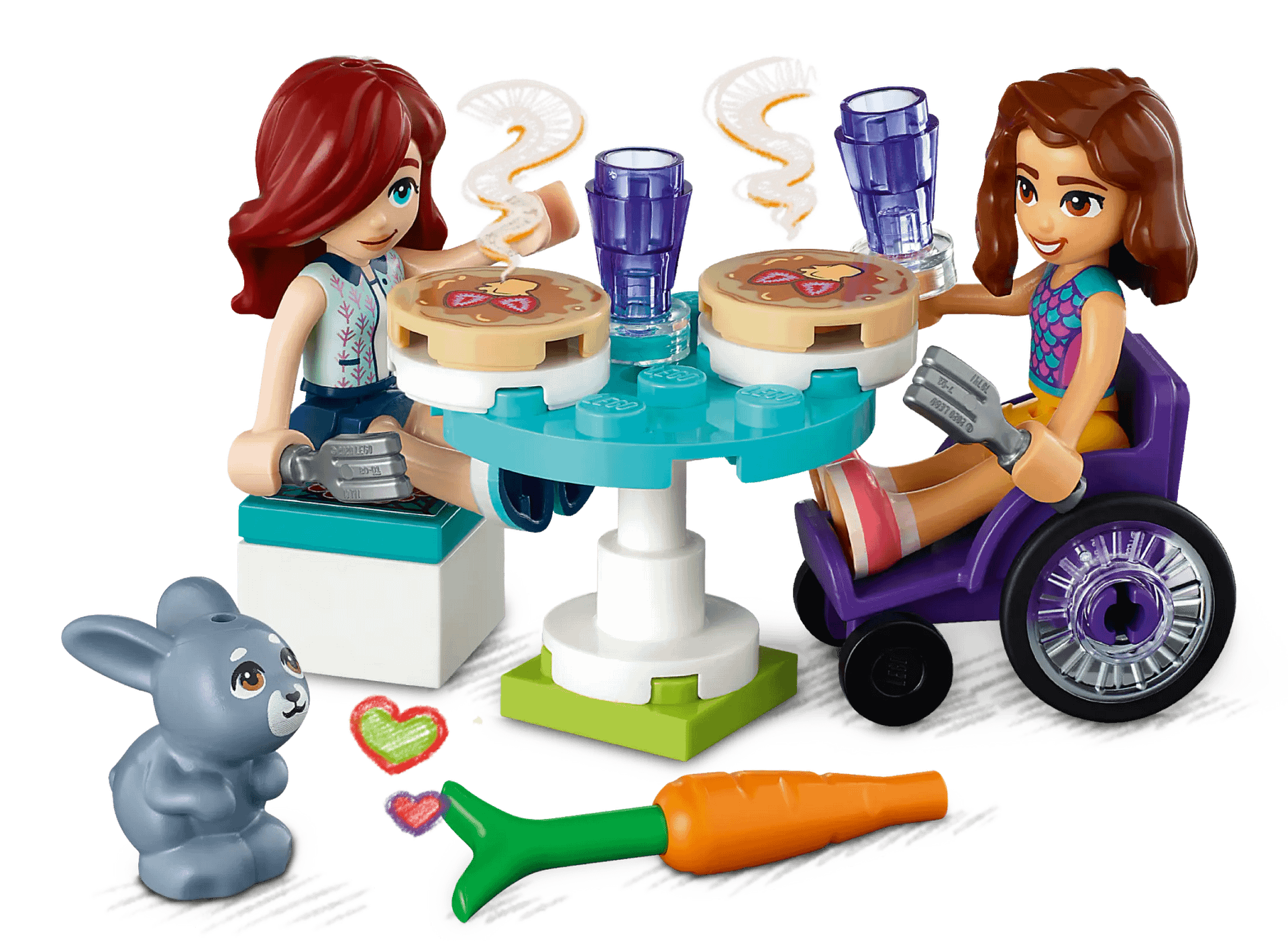 - 2 mini-dolls and accessories – The building toy set comes with LEGO® Friends characters Luna and Paisley, plus a stove, cash register, food mixer, outdoor table and a bunny character