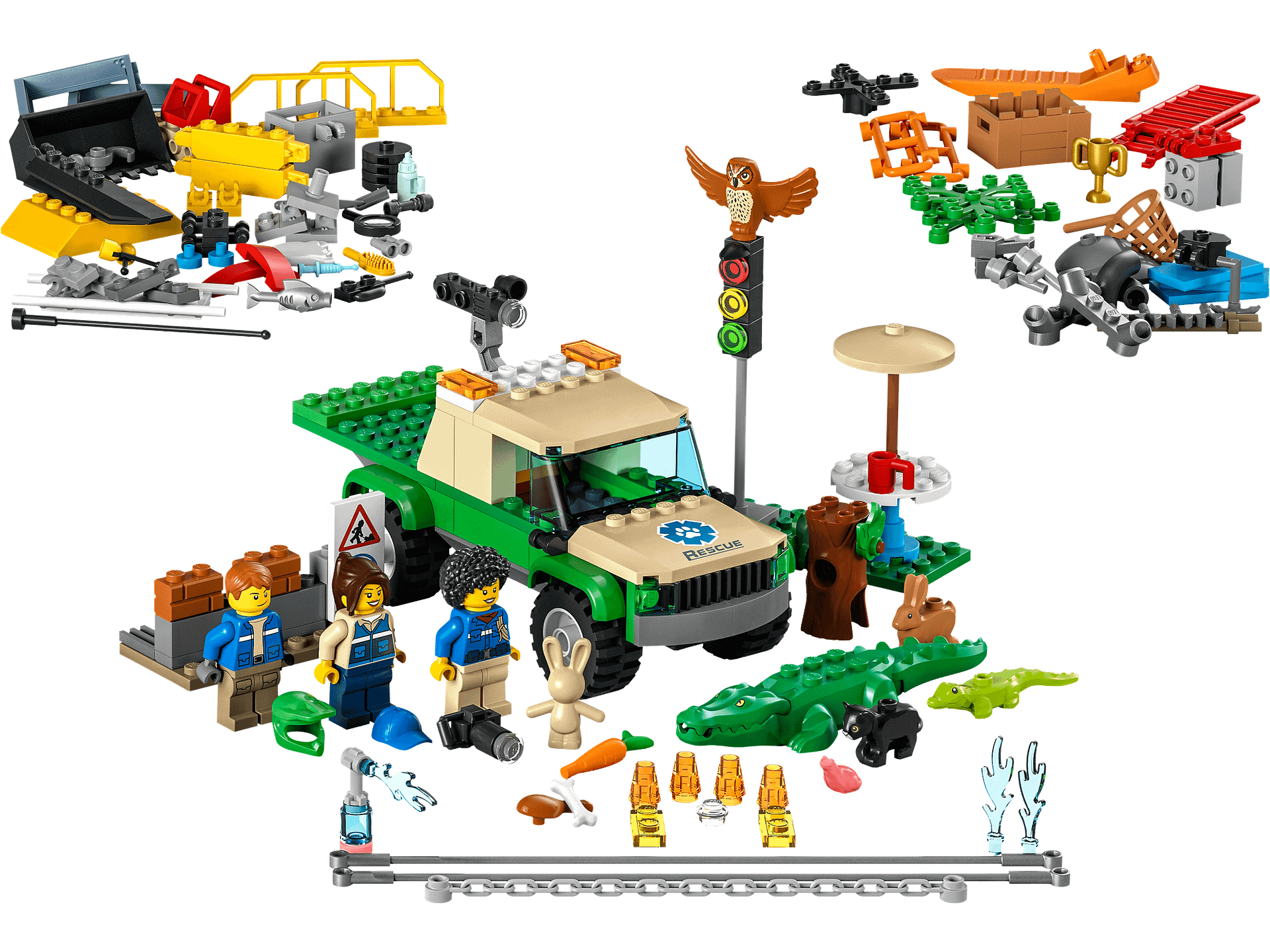 - Includes mission accessories – Minifigure accessories include a toy brush, magnifying glass, camera, trophy, binoculars, bunny, feeding bottle, syringe, walkie-talkie, net and shovel
